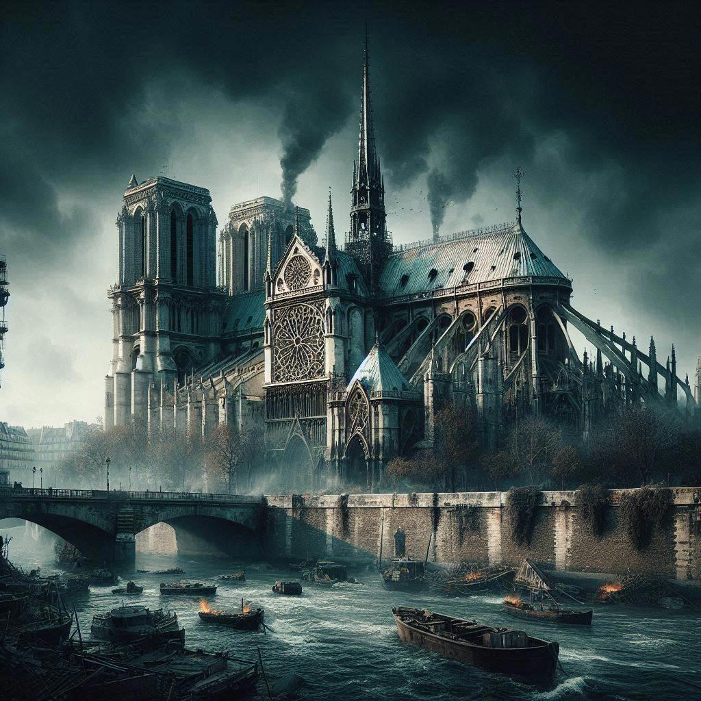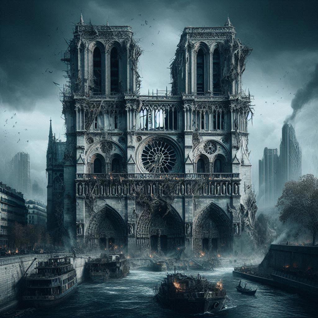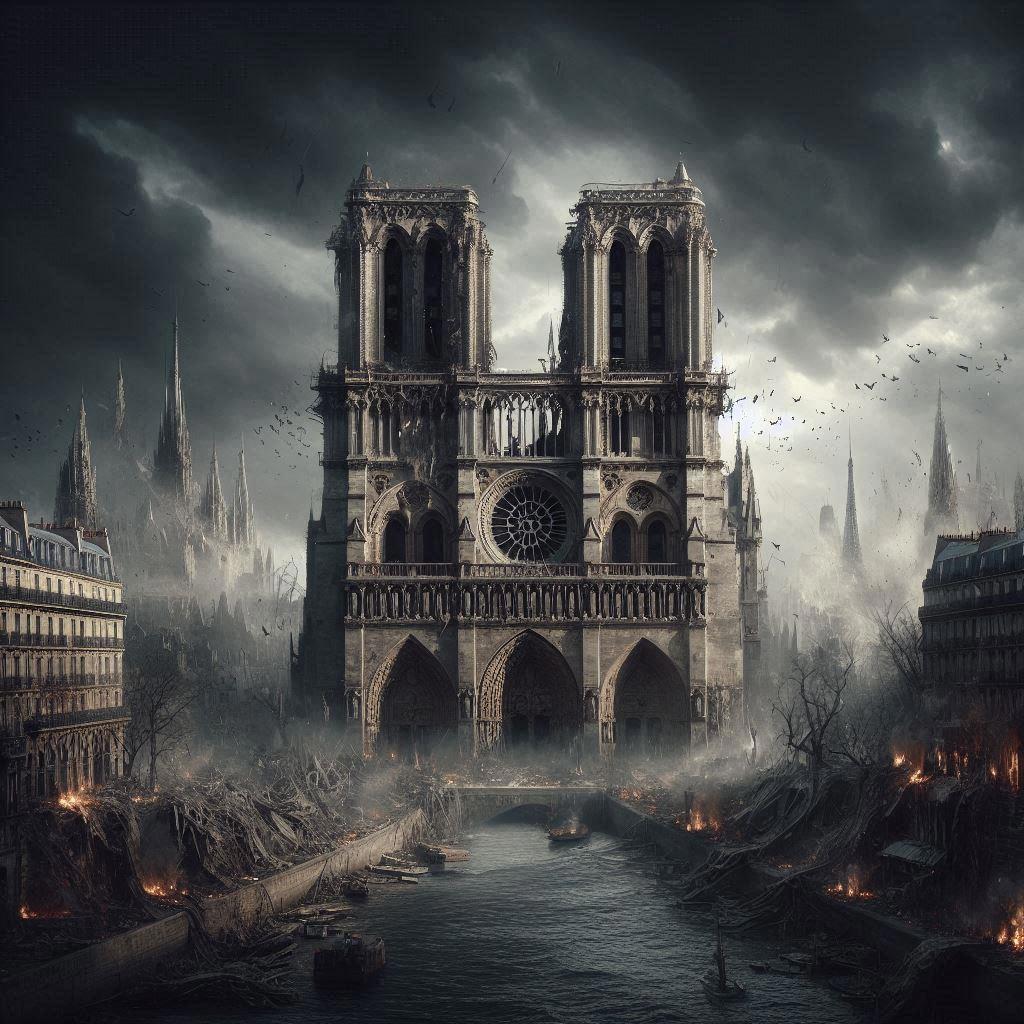 Решили мы с нейросетью немного пошалить в честь первого дня отпуска и наваяли подборку: Нотр-Дам-де-Пари. Постапокалипсис