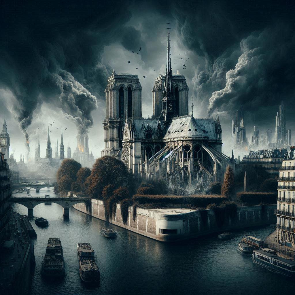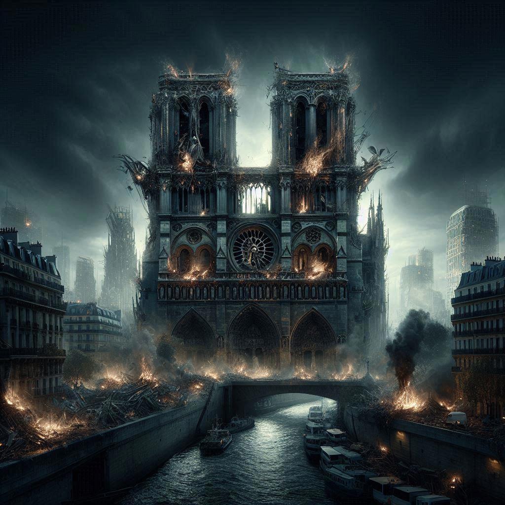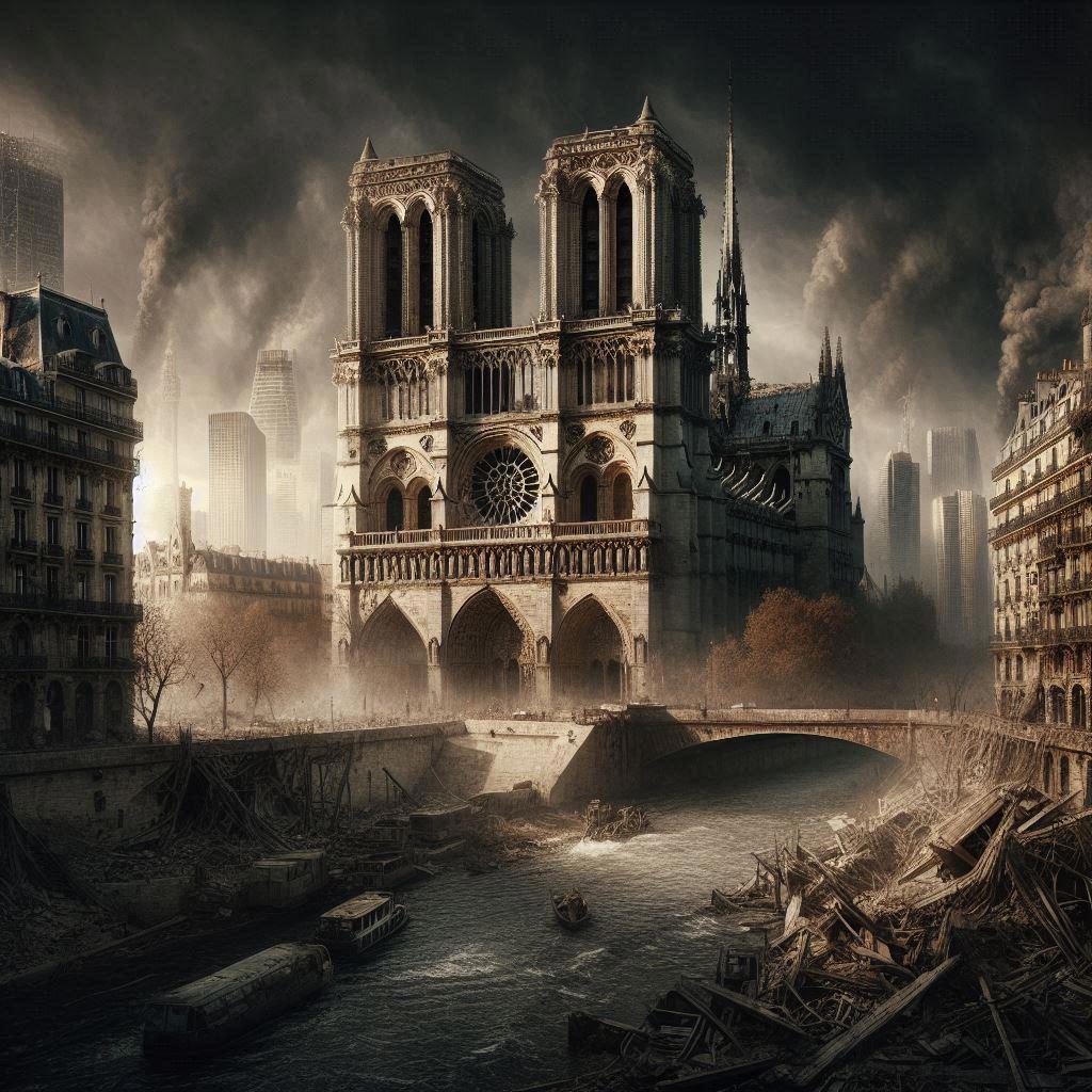Решили мы с нейросетью немного пошалить в честь первого дня отпуска и наваяли подборку: Нотр-Дам-де-Пари. Постапокалипсис