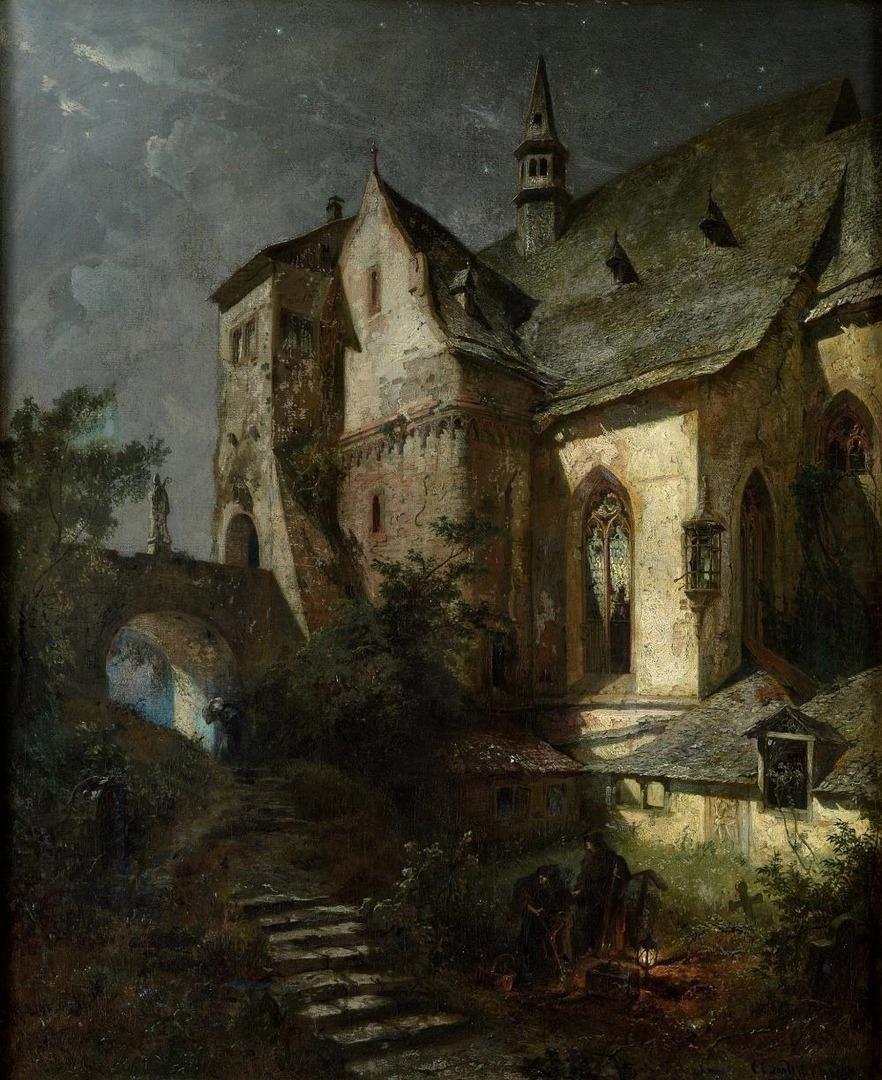 Автор: Ленская ОльгаЧто могут делать монахи ночью? Спать? А вот и нет. Молиться? Снова не угадали. Монахи по ночам идут к старому замку и закапывают там сундуки с золотом. Во всяком случае, на картине художника-романтика XIX века Августа фон Вилле они занимаются именно этим. Картина так и называется: "Монахи, закапывающие сундук с золотом при лунном свете". И, между прочим, может натолкнуть на идею какого-нибудь романа. Ну, если не задаваться вопросом: братья, зачем?