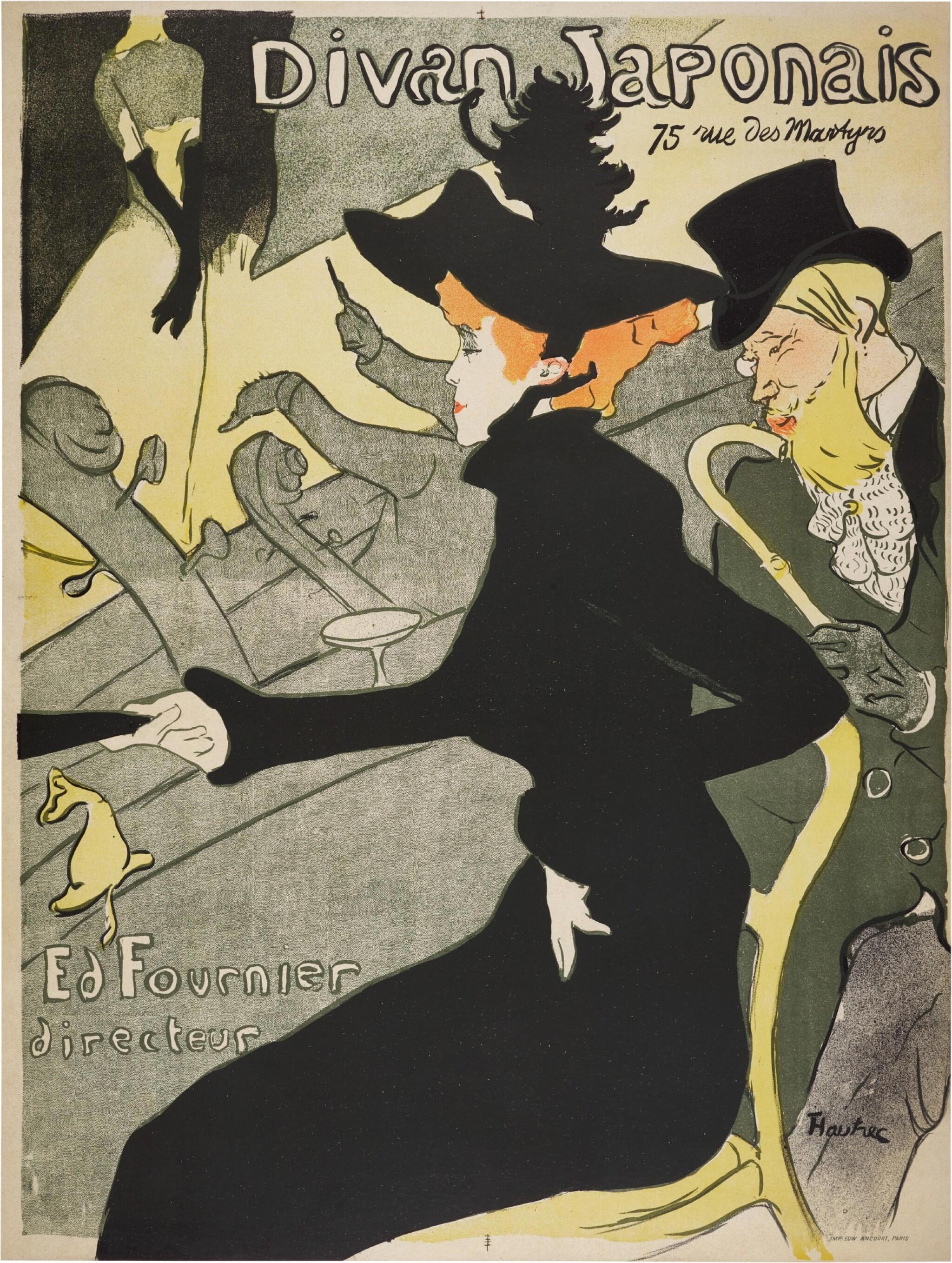 При этом художнику не нужно было далеко ездить, чтобы проникнуться духом Востока. Мода на всё японское была настолько сильна, что на Монмартре даже было открыто кабаре «Японский диван», где официантки были одеты в кимоно. Хозяин кабаре часто заказывал Тулуз-Лотреку афиши для вечерних концертов.