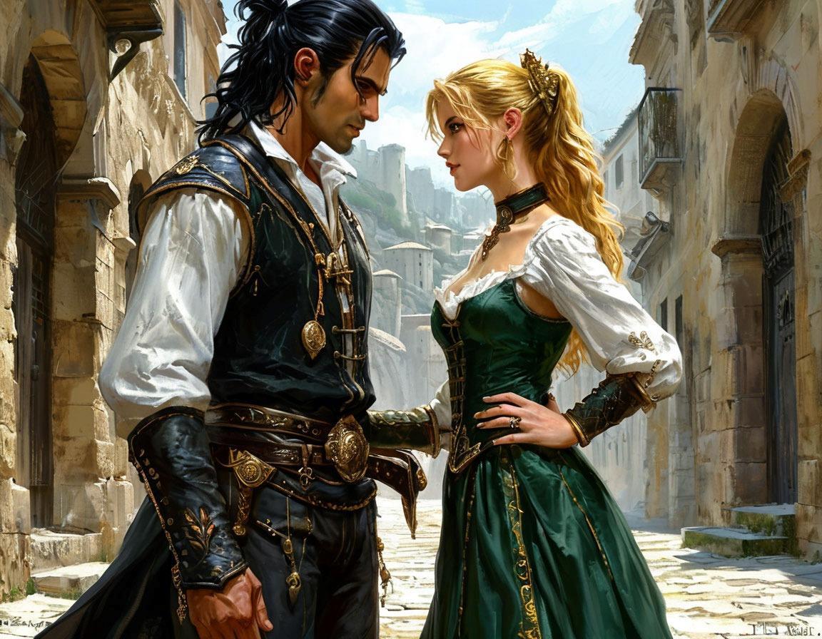 Алек стоял на той же улице, где располагалась швейная мастерская. Только отошел на несколько шагов, осматривая, что еще здесь находилось. Из открывшейся двери лавки на него вылетел зеленый с белым вихрь. Франческа подскочила к мужчине, разглядывая его пояс: