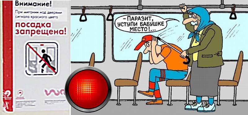 И вот в вагон входит завоеватель столицы, и увидев табличку шевеля губами долго в нее вчитывается, а потом обалдело смотрит то на табличку, то на меня и спрашивает: "А что, посадка сейчас запрещена?".