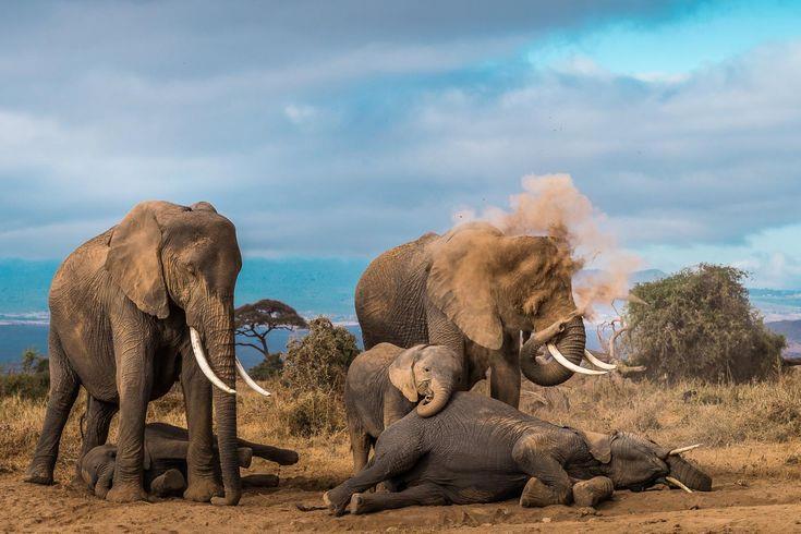 Автор: Пархоменко АлександрСлоны - единственные животные, у которых есть ритуал захоронения. Обычно продолжительность жизни слона составляет шестьдесят-восемьдесят лет. Если слон болеет, то члены стада приносят ему еду и поддерживают его, когда он стоит. Если слон умер, то они будут пытаться оживить его с помощью воды и еды некоторое время. Когда становится ясно, что слон мертв, стадо замолкает.
