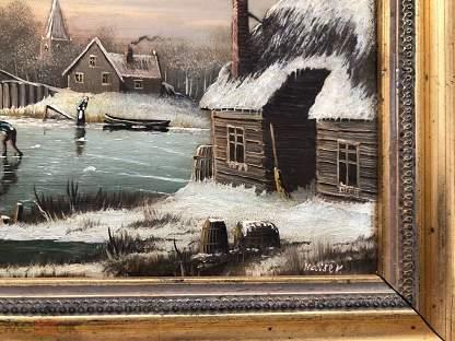 Все знают, что Нидерланды- это каналы, коньки и мельницы. В, общем все это Иоганн Кайзер и изображает на своих картинах.