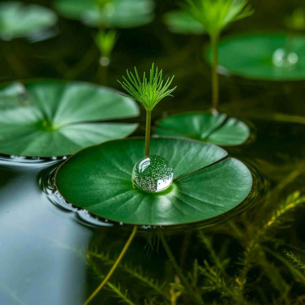 - Описание: Водное растение. Плавающие на поверхности округлые, темно-зеленые, глянцевые листья. Под водой – длинные стебли с перистыми, нежными листьями. Цветы уникальны: они поднимаются над водой на тонких цветоносах. Сам цветок похож на крошечную (2-3 см), идеально прозрачную каплю воды. Внутри этой "капли" видна единственная круглая, сверкающая "слезинка" – нектарник с концентрированным ядом. "Капля" испускает слабый жемчужный свет.