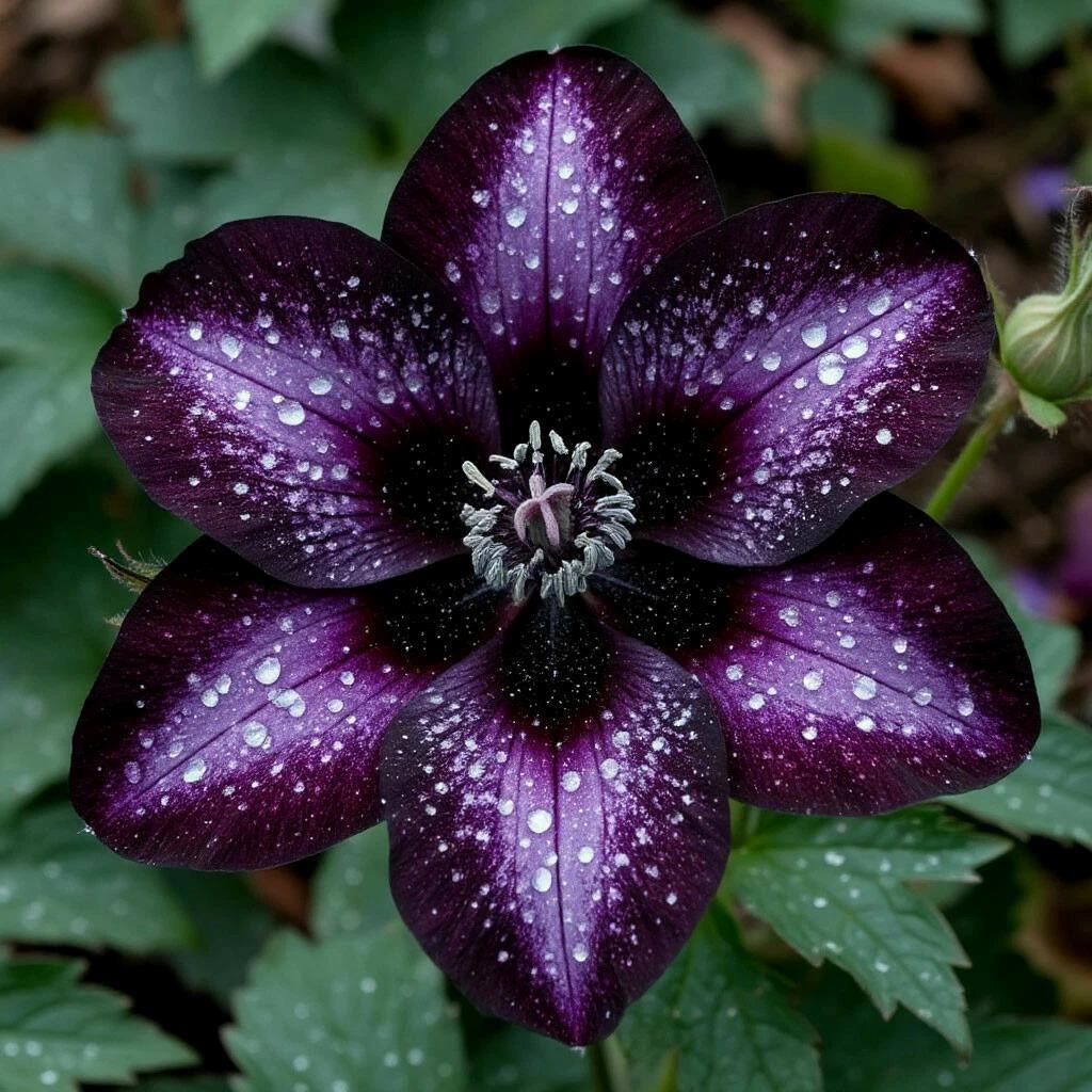 * Полнолуние: За одну ночь вырастает крепкий стебель (40-60 см) с крупными, сердцевидными, бархатистыми листьями глубокого фиолетового цвета, испещренными серебристыми лунными узорами. Распускается один крупный (10-15 см), тяжелый цветок. Лепестки бархатные, темно-фиолетовые, почти черные, с мерцающими серебристыми крапинками и длинными извитыми тычинками, светящимися бледно-голубым светом. Цветок испускает сильный, дурманяще-сладкий аромат, привлекающий ночных бабочек-призраков. Корень – черный, узловатый, с кроваво-красными прожилками на срезе.