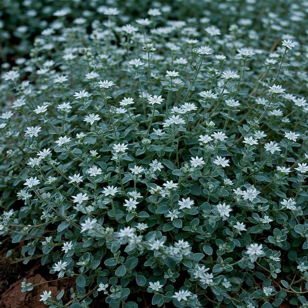 - Описание: Низкорослый стелющийся полукустарник или почвопокровник. Образует плотные "подушки". Стебли тонкие, гибкие, переплетаются в сложный узор, напоминающий паутину, с мельчайшими серебристыми волосками. Листья крошечные, чешуйчатые, серебристо-серые. Цветы микроскопические, белые, звездчатые, собраны в соцветия, которые светятся слабым голубоватым светом в темноте, создавая иллюзию созвездия на земле. Все части растения покрыты липким, прозрачным секретом.