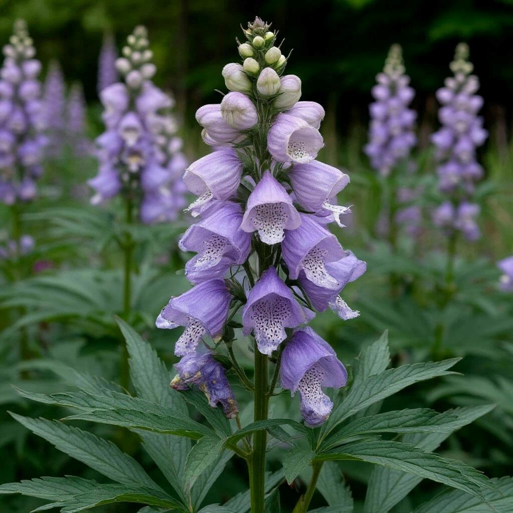 - Описание: Высокое (до 1.5 м) травянистое растение с прямым, ветвистым стеблем. Листья темно-зеленые, глубоко рассеченные, пальчатые. Цветы – главное оружие. Крупные, капюшоновидные (как у аконита), но необычайно нежные на вид. Окрас – переливчатый от бледно-лилового до мерцающего серебристо-голубого. Издают тончайший, сладковатый аромат, почти неуловимый. Пыльца и нектар крайне токсичны.