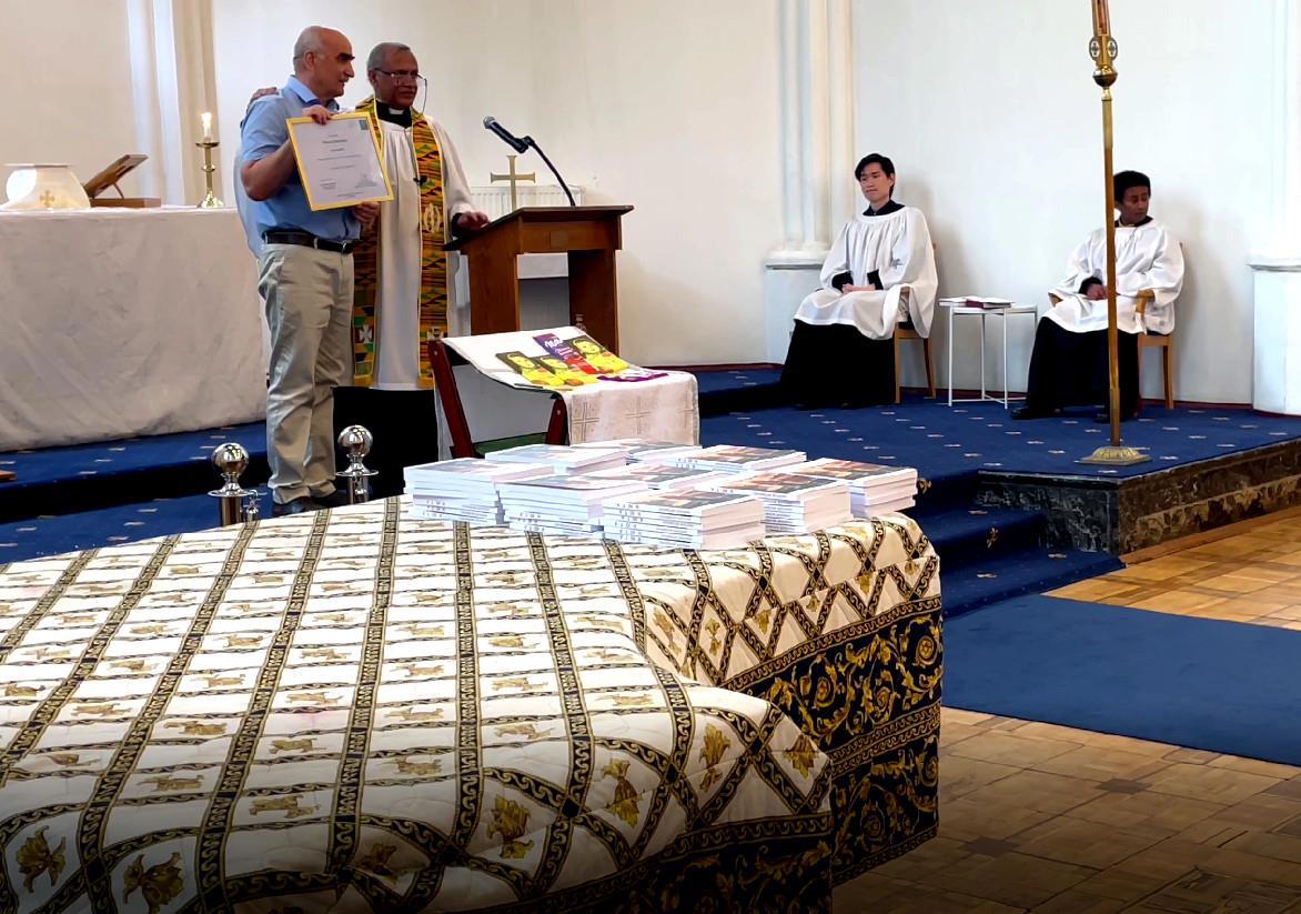 Сертификат об окончании библейского курса ДПИ ему вручал пастырь церкви Арун Джон в англиканской церкви святого Андрея в Москве на Вознесенском переулке 8. Тема дипломного проекта Николая Матвиенко «Ковчег Завета и скрижали Закона в скинии: декор и материалы».