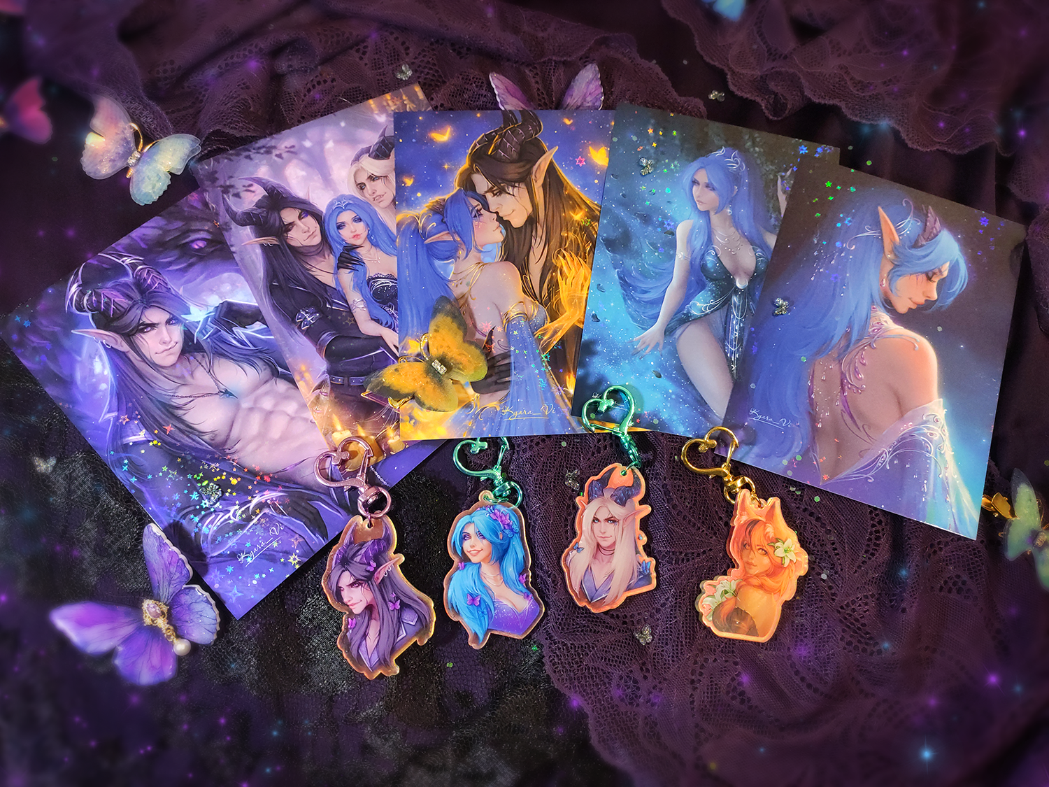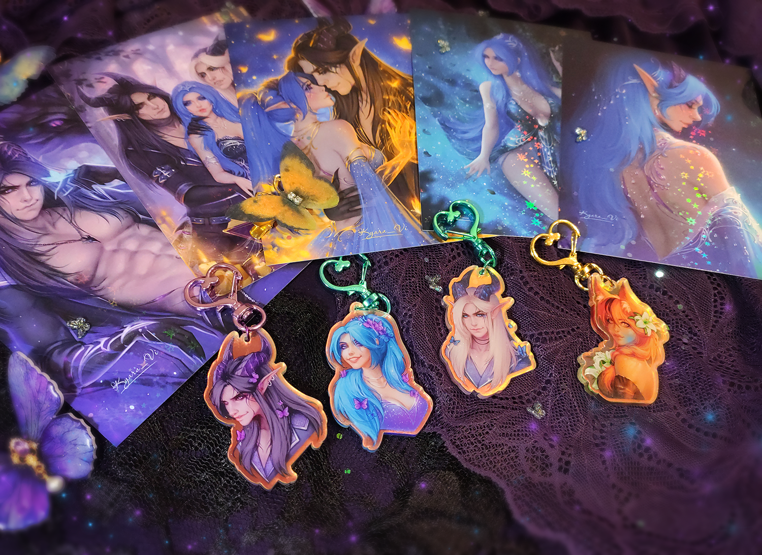 Делала лотерейку по первой книге, вот такой вышел мерчик на призы, жемчужный акрил очень красивый, глаз не оторвать