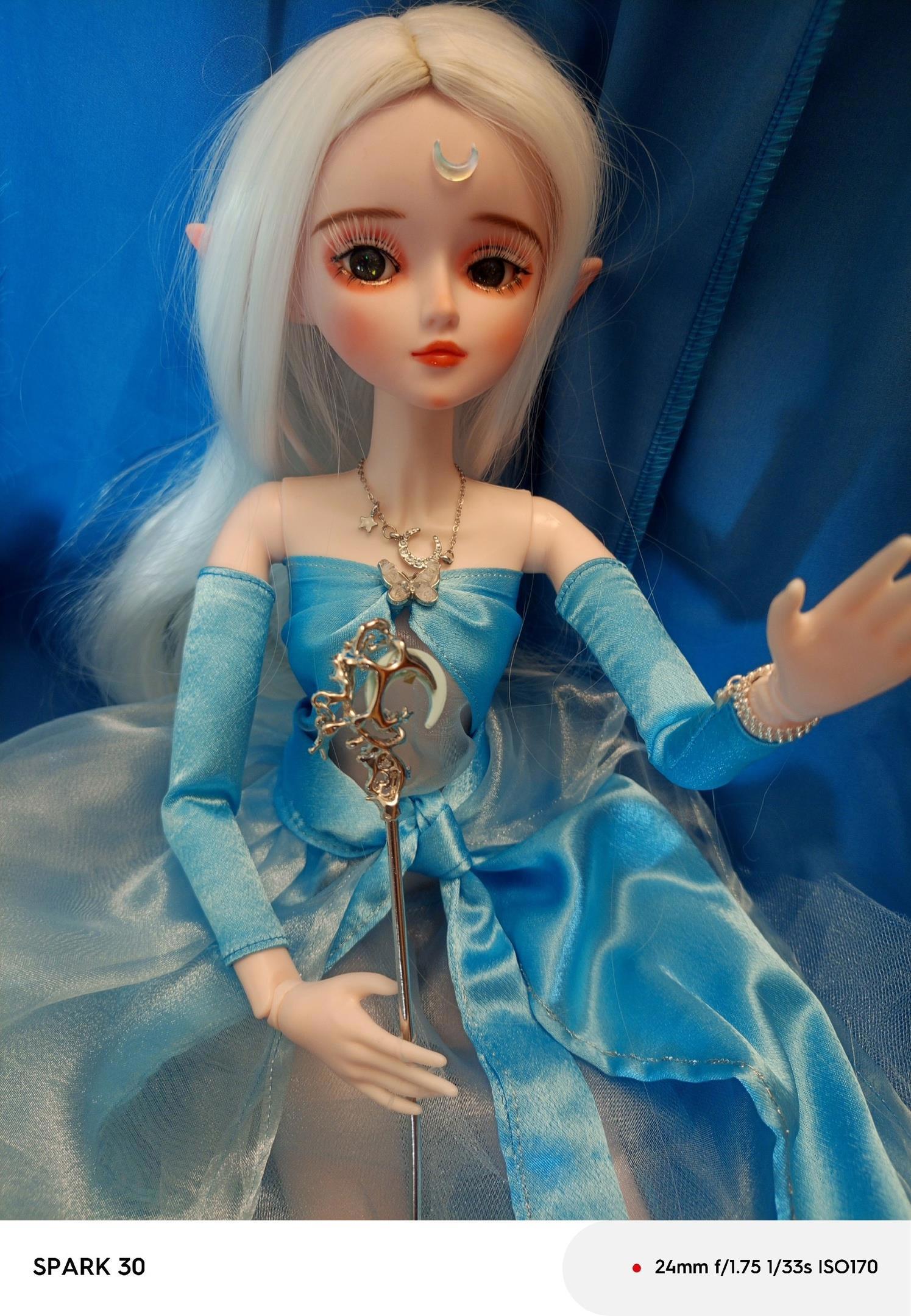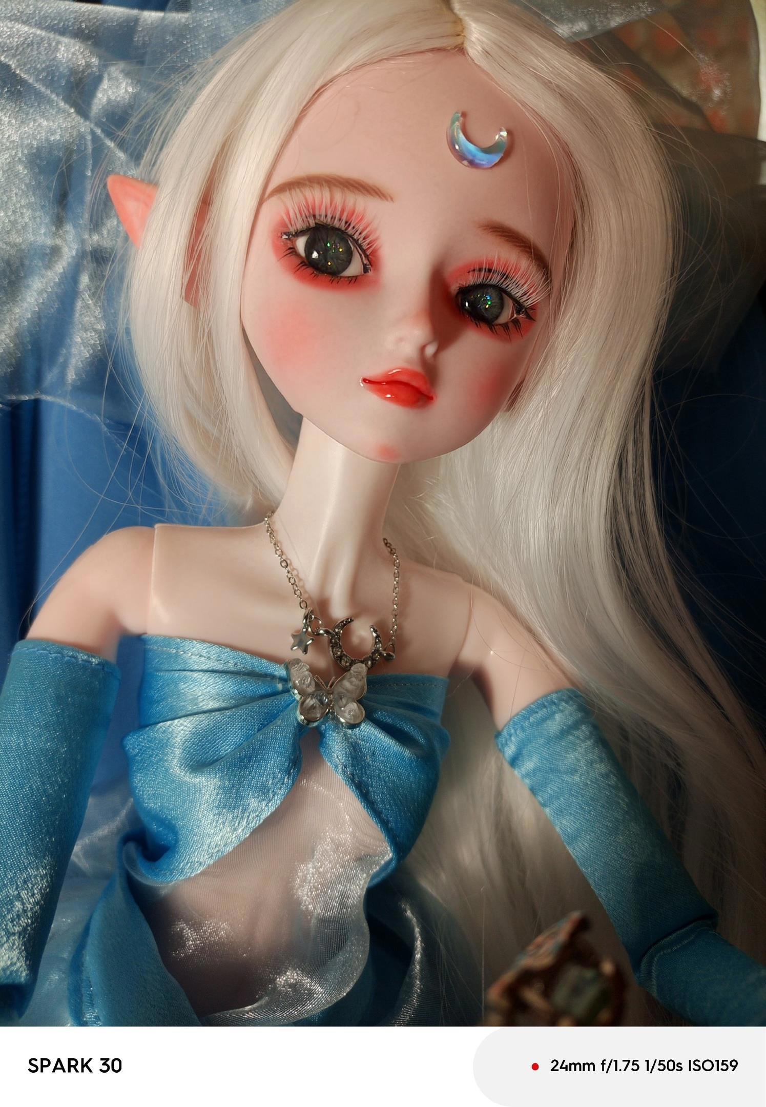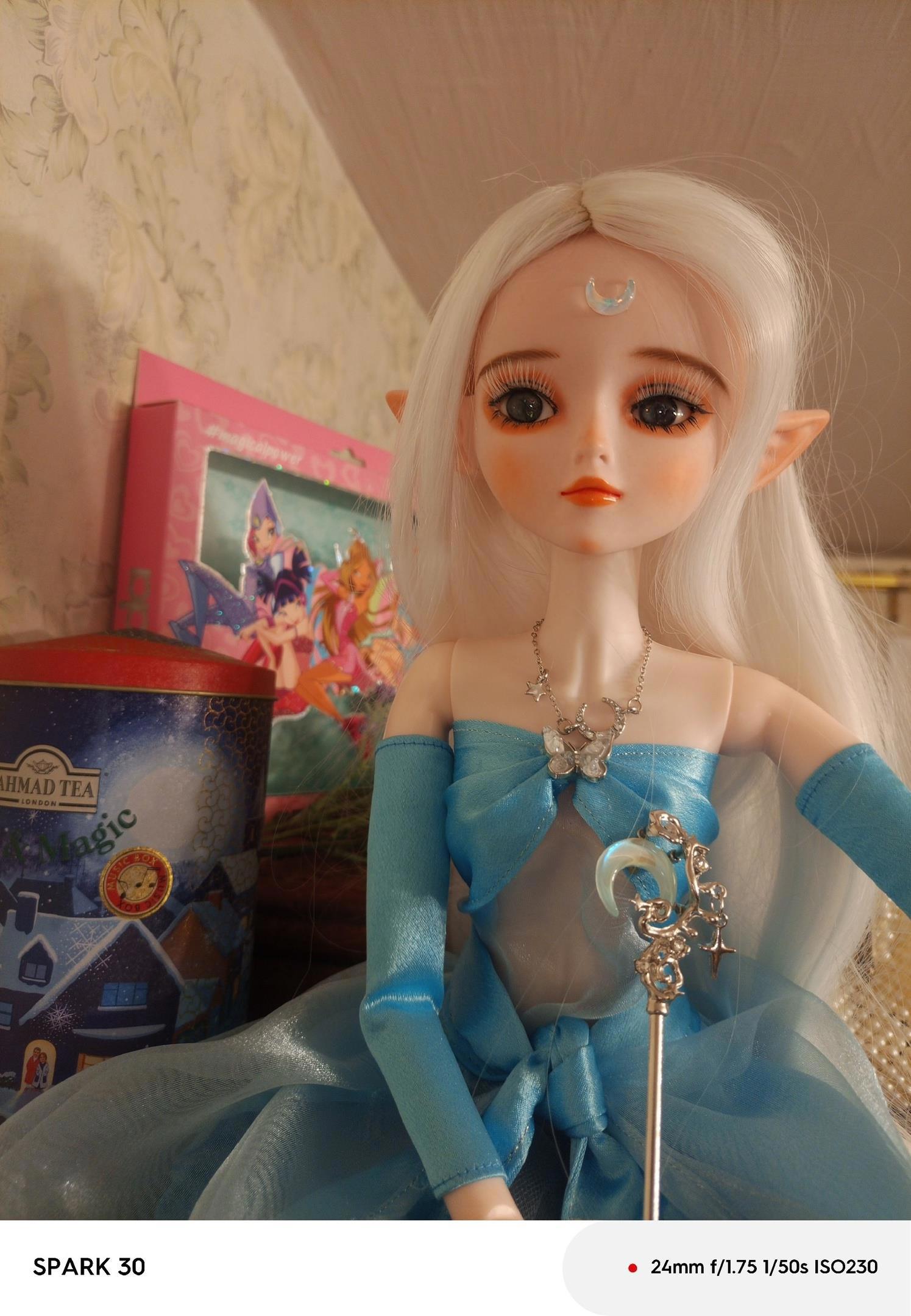 Как минимум весь май я к Азариэль не прикасалась, хоть у меня и были на руках все детали. Просто вот как отрезало и все. Но сегодня руки все же дошли: я наклеила ей белые реснички и сделала украшения.
