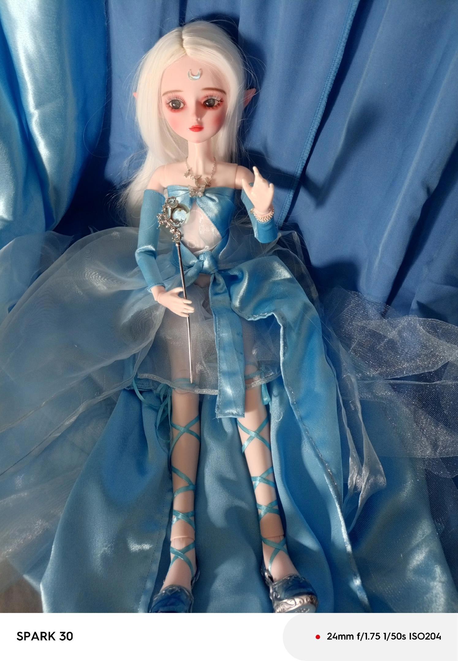 КРиворукий китаец дико сэкономил на упаковке (приехал тупо небольшой рулон пупырки, и на голове куклы сзади образовалась вмятина.