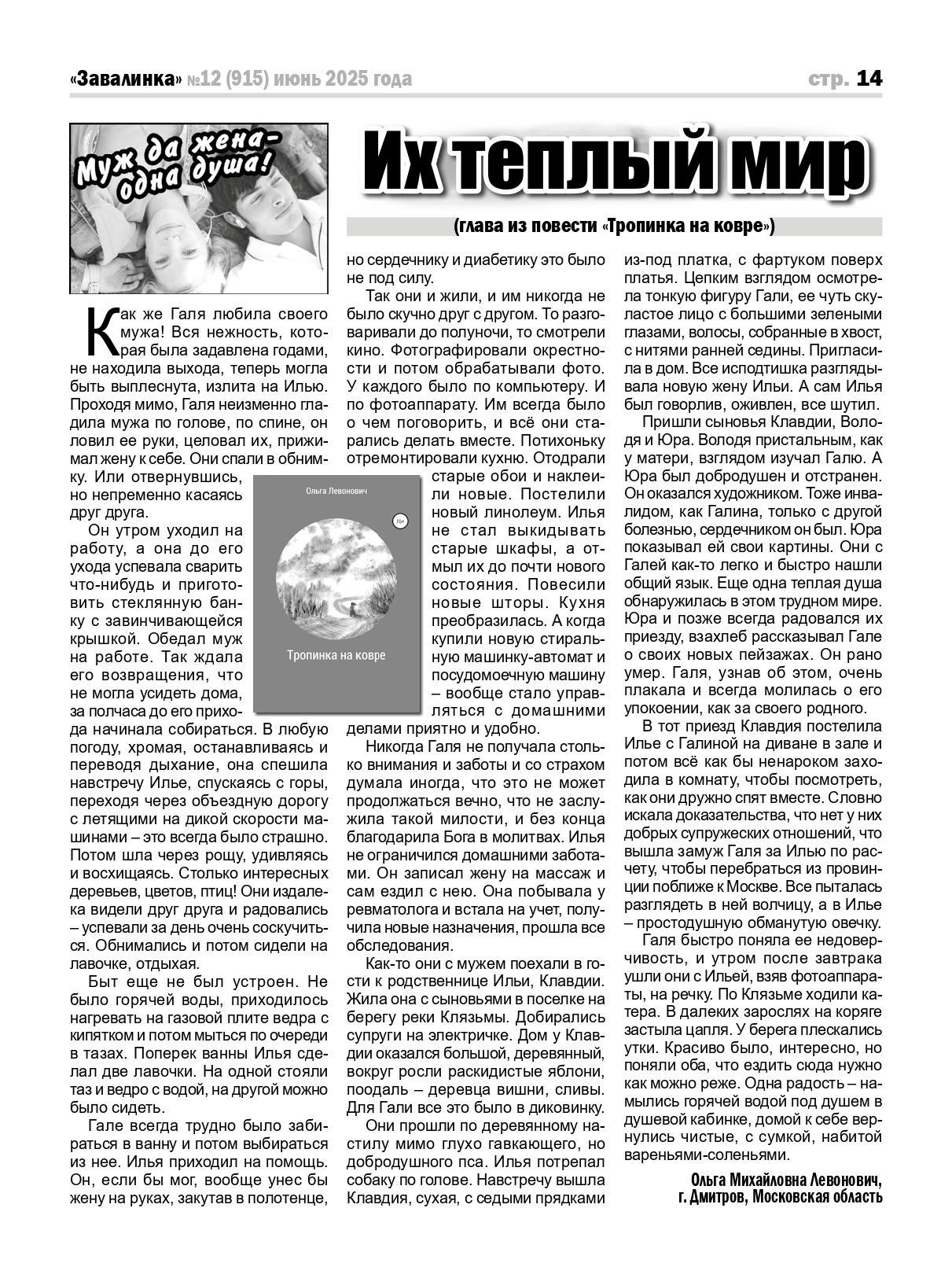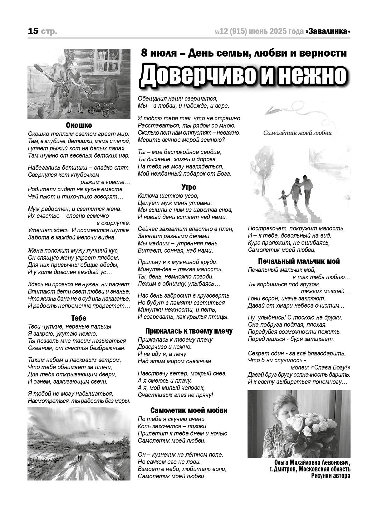 В журнале "Завалинка" опубликуют мои рассказ, стихотворения и рисунки. Благодарю дорогого редактора Ольгу Пословину за внимание к моему творчеству.