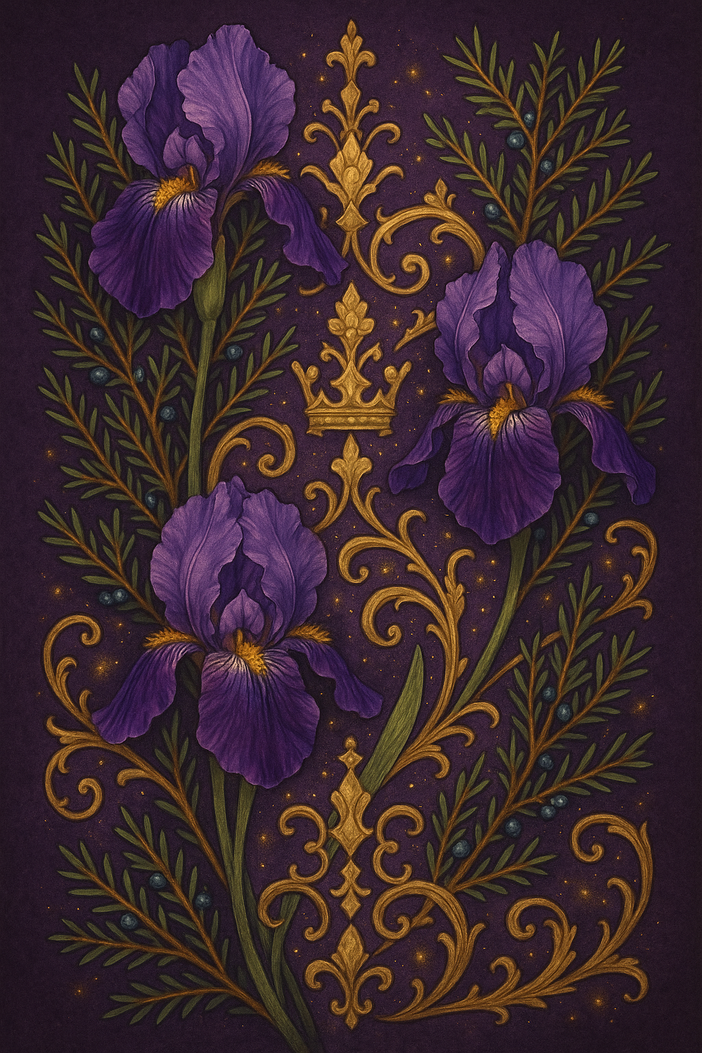 В-третьих, мне показалось подходящей деталью то, что листья ириса ассоциировались с мечами. Род принца Ноа не только славный, но и очевидно воинственный в прошлом - мечи ему подходят и хорошо смотрятся как постоянный мотив орнаментов в Ирисовой Горечи - я несколько раз упоминала об узорах из листьев, похожих на клинки. Усадьба - место недоброе, в прошлом - крепость, и мечи повсюду должны свидетельствовать об этом.
