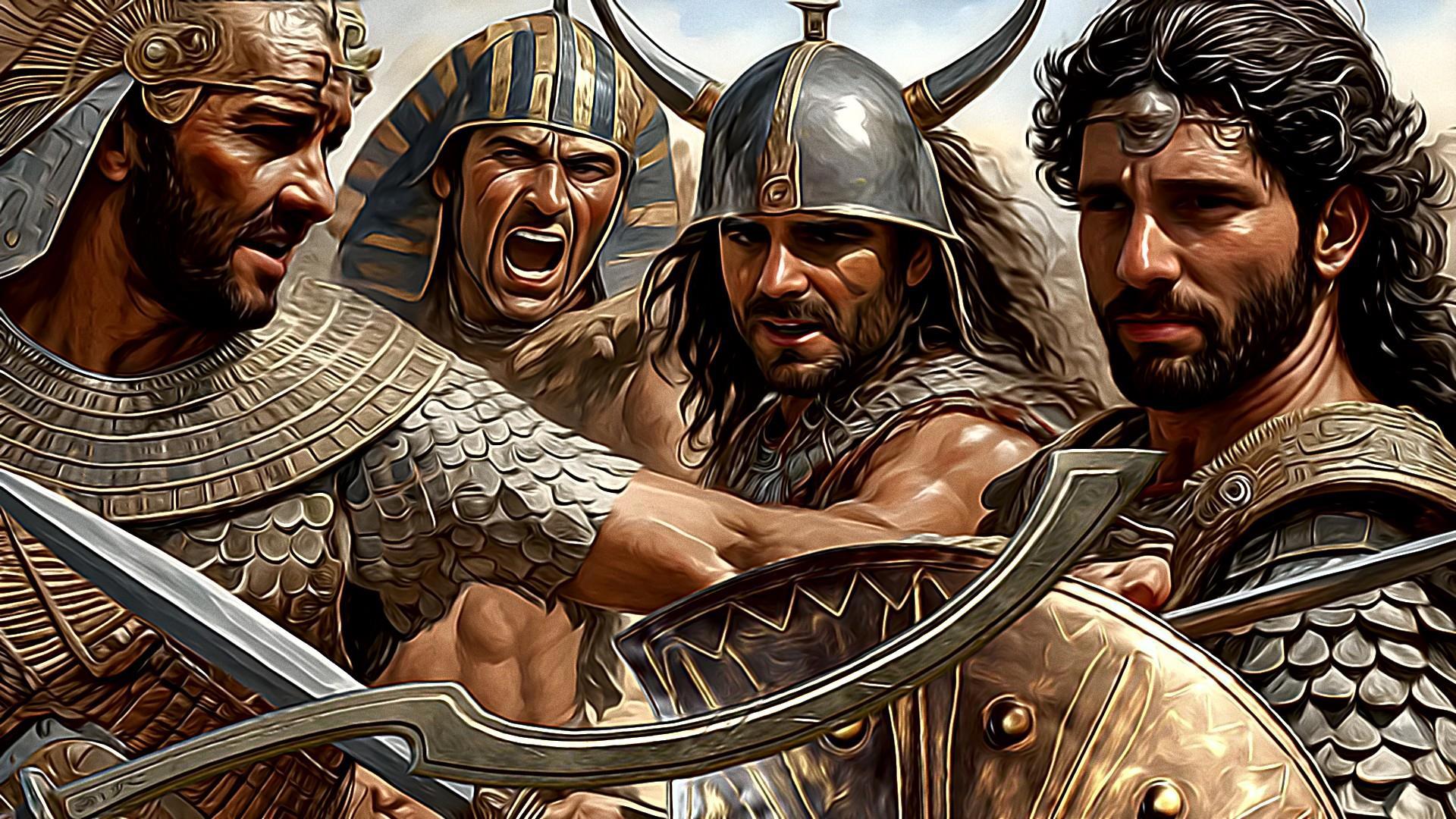 Автор: Евгений ТоктаевДелаю новые иллюстрации для "Золотого века". Очень тяжко рисовать битву при Кадеше нейросетями, они в такое категорически не умеют. Бороться с хеттскими шлемами и египетскими платками устал и решил себя простить. В общем, матчасть условная. Близко, но не точно. Хеттские шлемы должны быть, как на картинке №3, там, где Хаттусили на переднем плане. А почти все нарисовались коринфскими.
