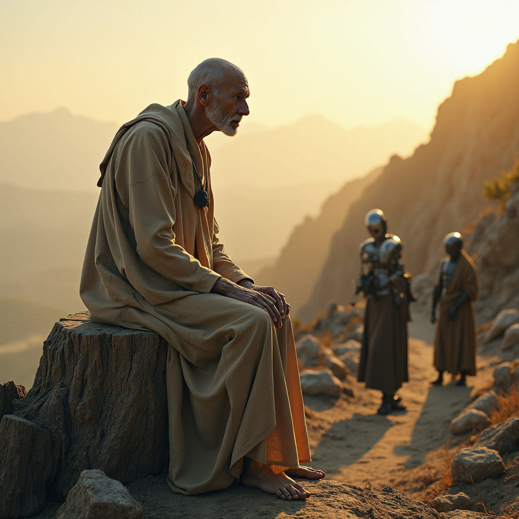 Автор: Ярослав КирилишенНа краю тропы, где солнце замирает над ущельем, паломники замедляют шаг. Здесь сидит он — Старец, чьё имя давно забыто, но присутствие ощущается острее всяких слов. Он не говорит, не двигается, не просит — и всё же к нему идут. С разных миров, из разных эпох, с разными страхами. Говорят, достаточно просто посидеть рядом.