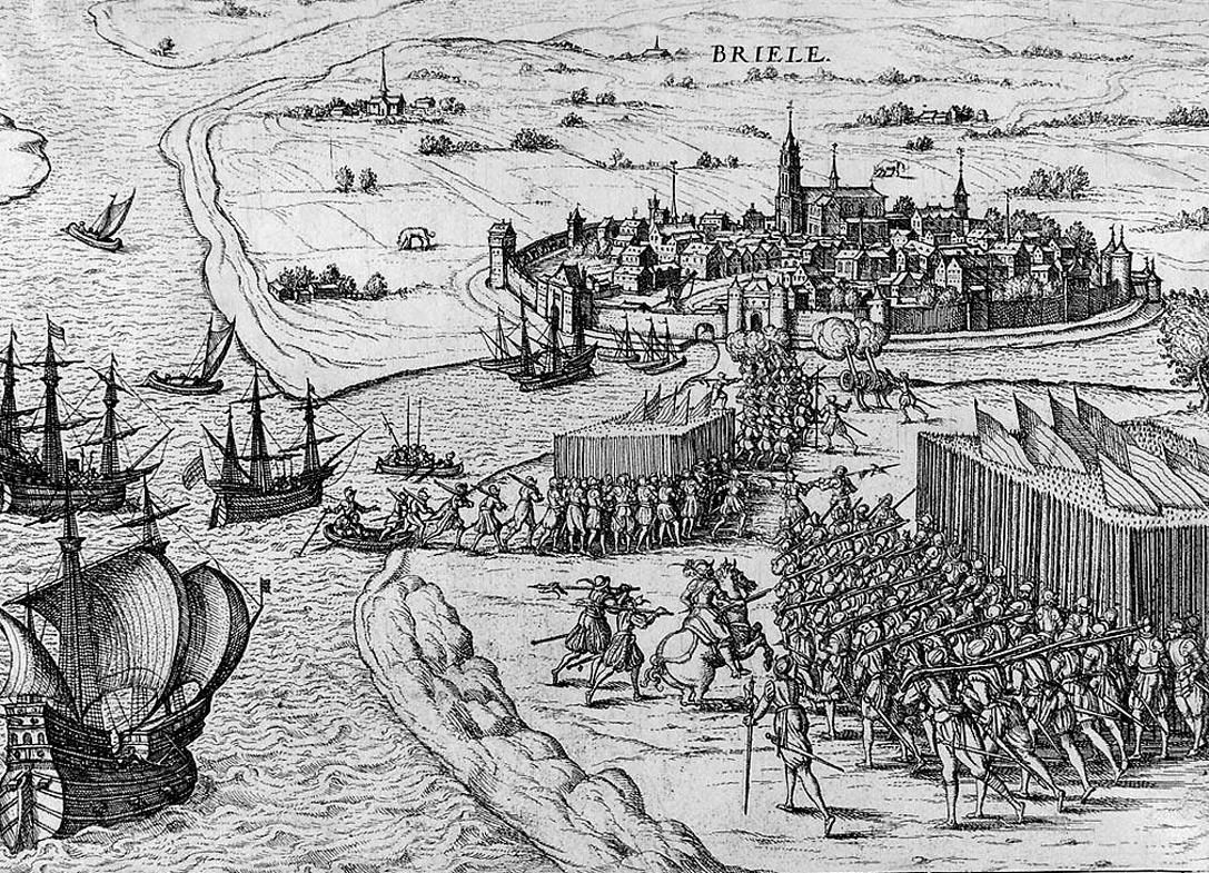 «Взятие г. Брилле гёзами в 1572 г.». Гравюра. Между 1572 и 1590.