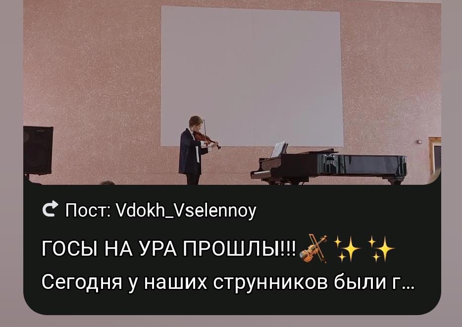 Сегодня у наших струнников были госы в СККИ. Все НА ОТЛИЧНО сыграли! Волнительный процесс был для трёх замечательных скрипачек и одного виолончелиста, которые сдавали госы, особенно для тех, кто поддержал их на важном событие: наши преподаватели, концертмейстеры, родители и близкие люди!!! Поздравляю!!! Молодцы!!! Я за вас рада, особенно когда увидела наших преподавателей из колледжа искусств и куратора!