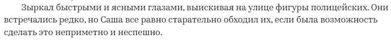 Да, у меня есть претензии и к тексту (повторюсь, то, что позволительно убогоньким сетераторам, недопустимо для настоящего писателя), и к излишнему нагнетанию, временами отдающему убогой левиафанистой чернухой, но даже так слушать книгу было приятно. Я получал настоящее удовольствие, следя за историей Сашки, и благодарен за это автору.