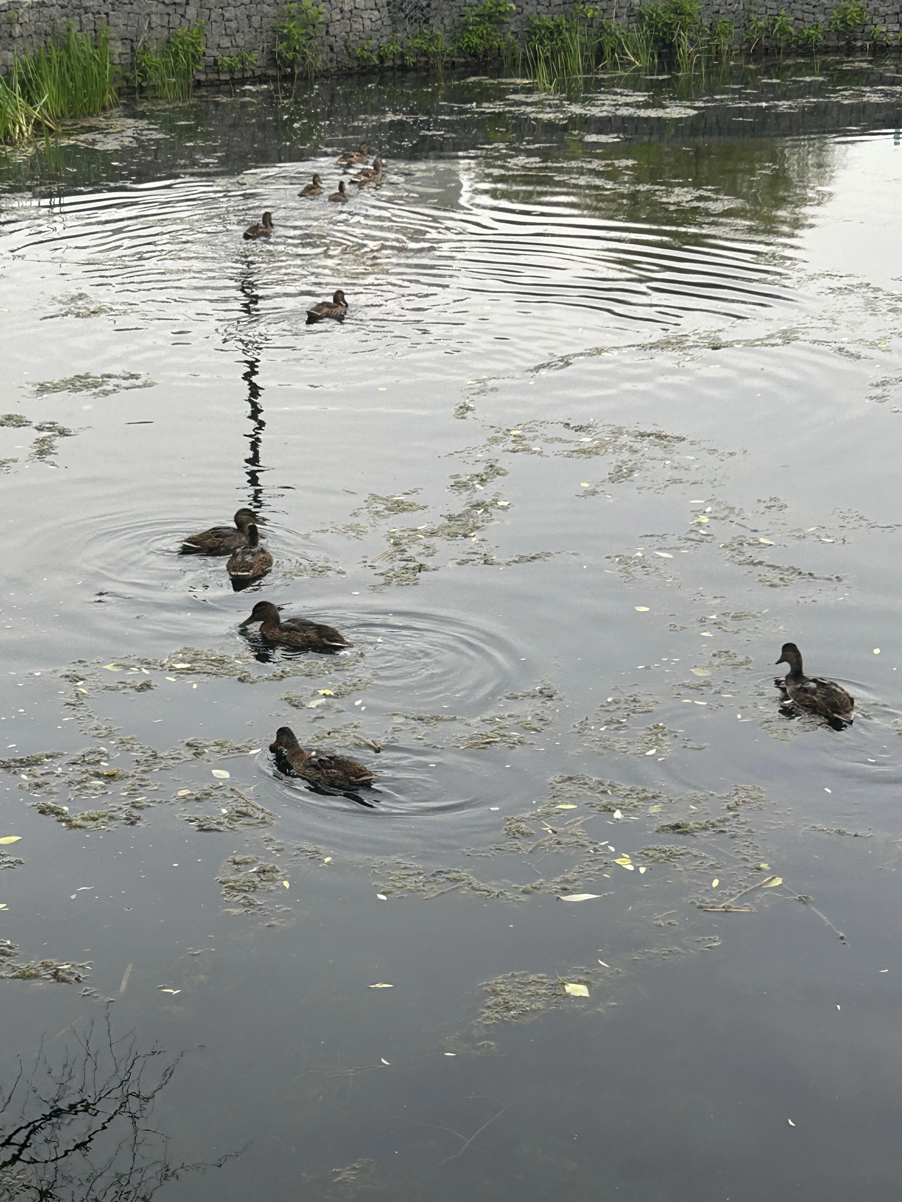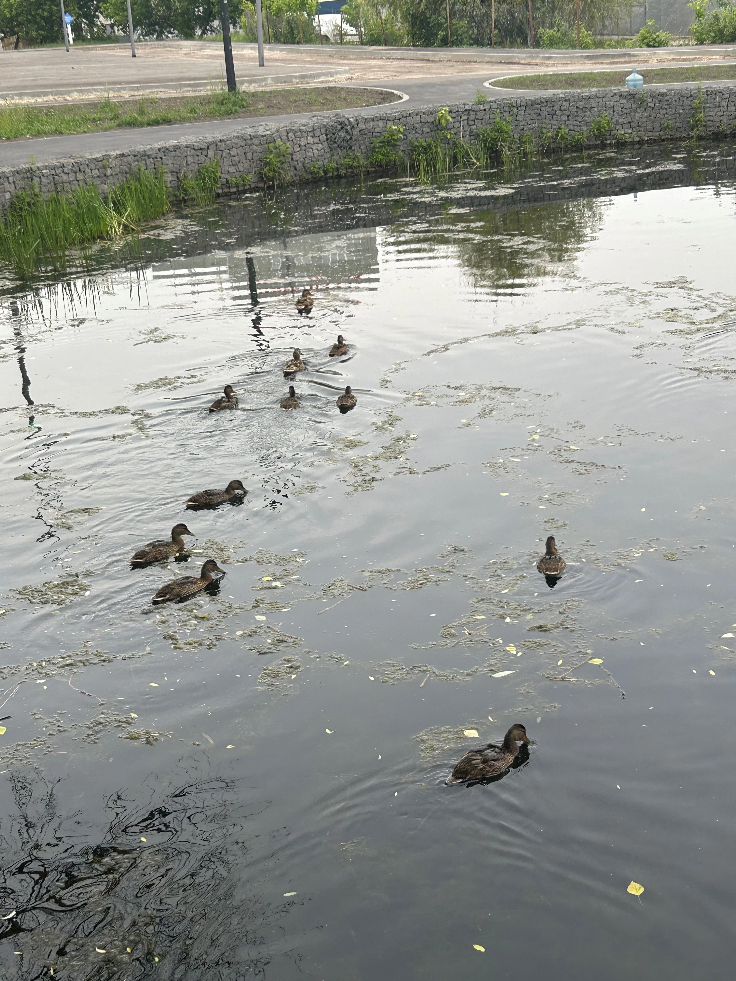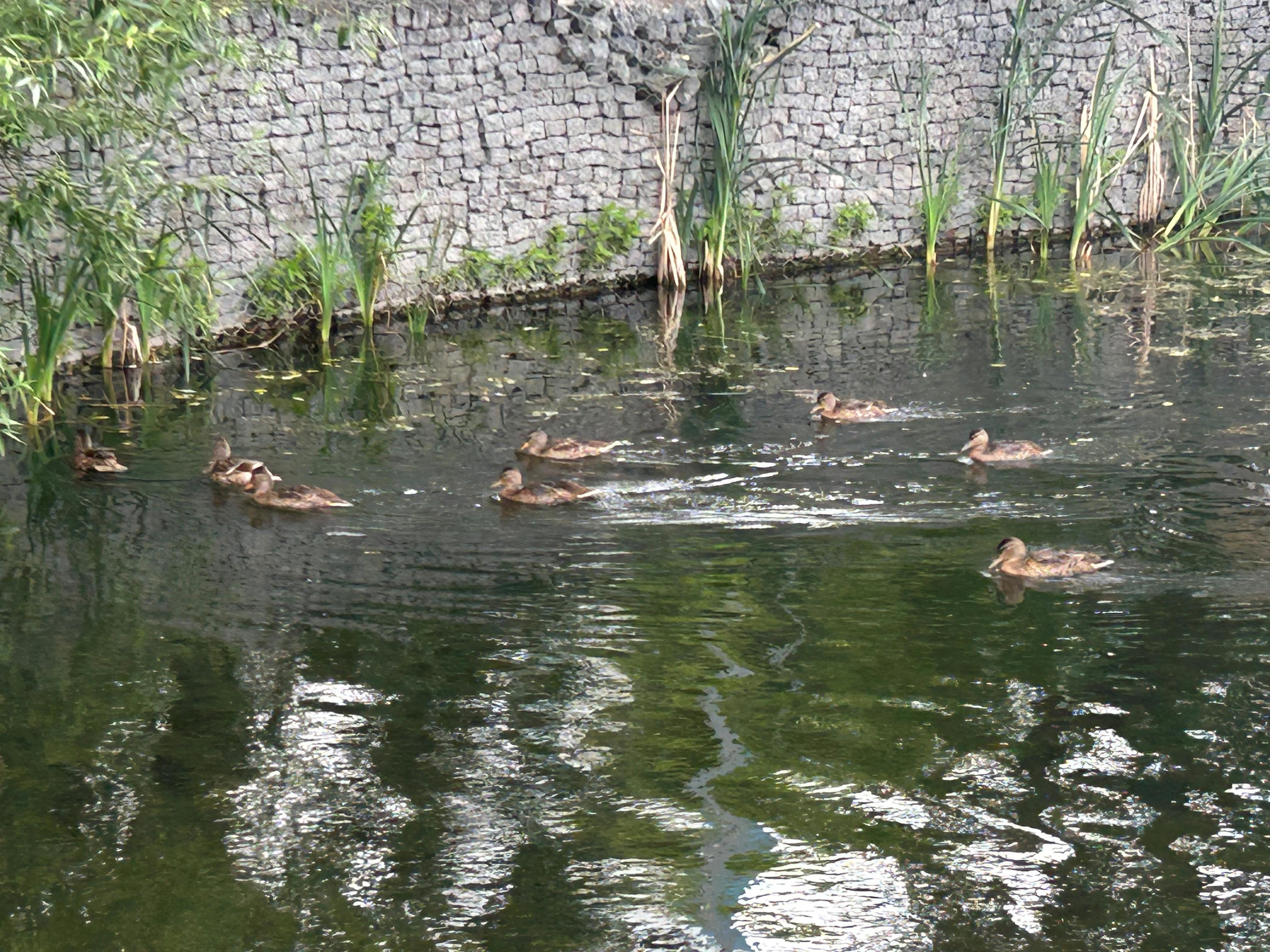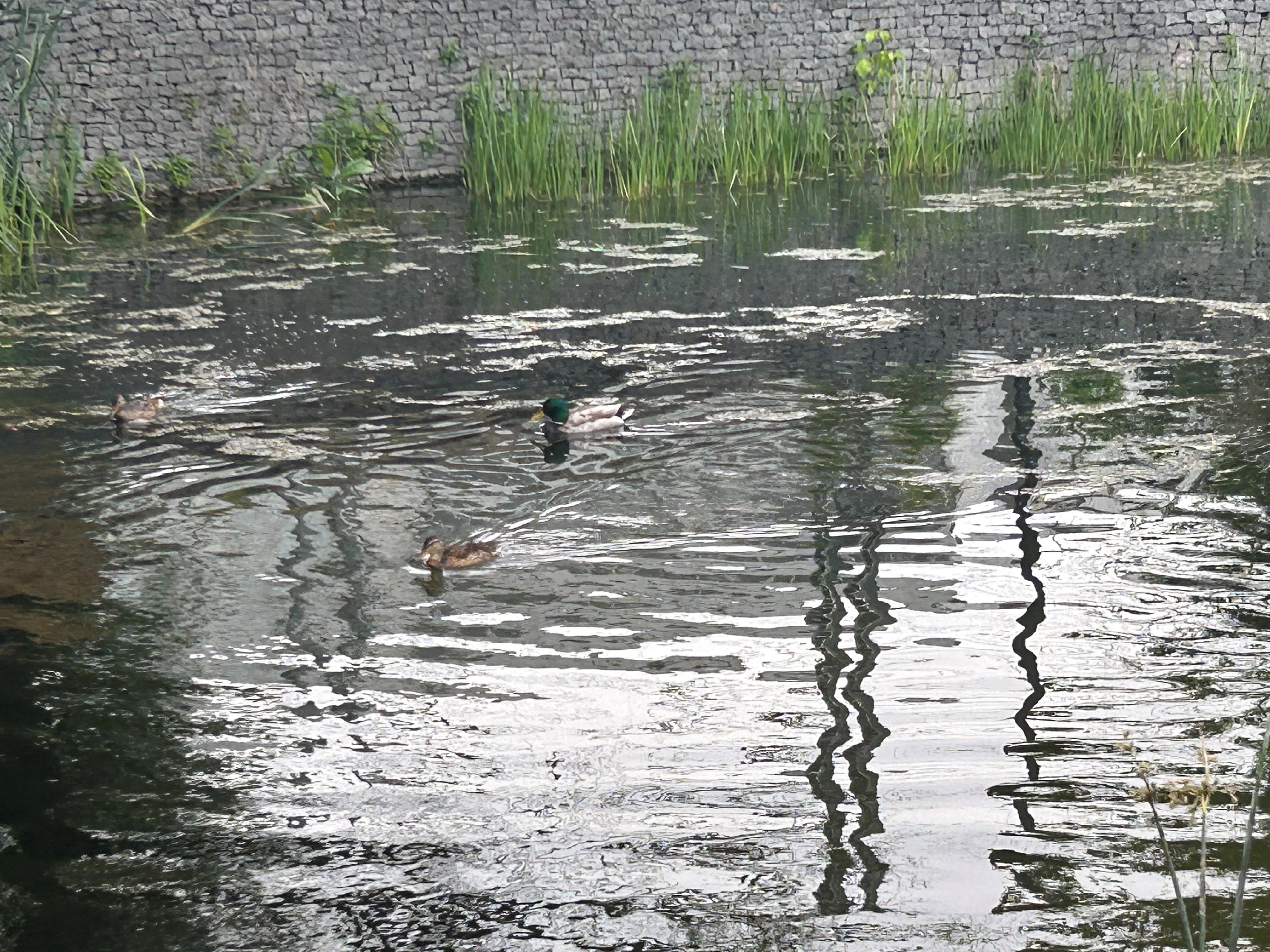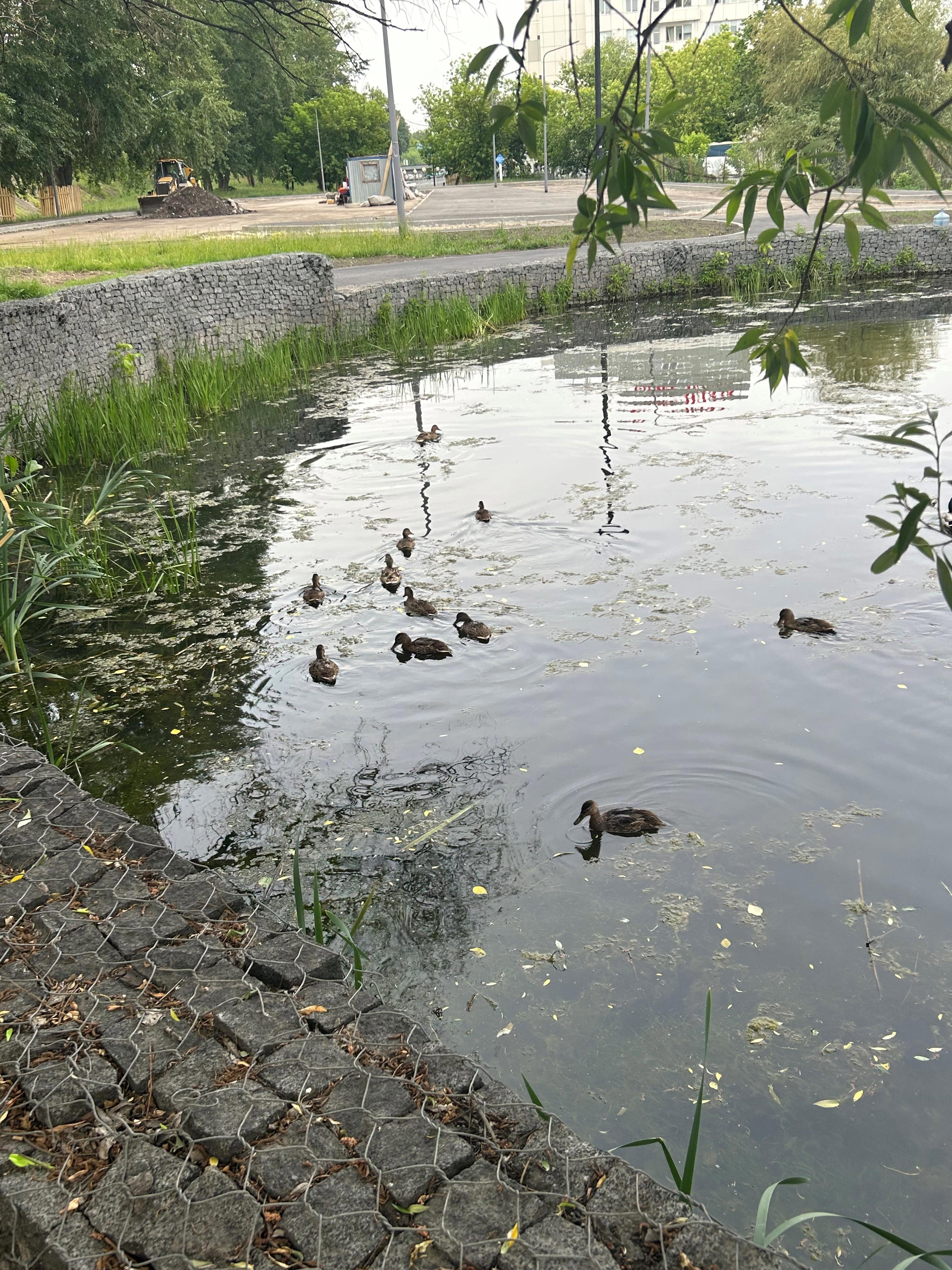 Так что как видите, пруд не пустует. Вообще плавающий молодняк видел ещё в мае, но расстояние и решетки мешали съёмки. Сейчас же юные ути уже неплохо так подросли, даже могут недолго летать. Одна утя как видите вылезла на парапет, также видел в пруду несколько сцен «погонь», когда одна утка почему-то гоняла другую, и та улепётывала от обидчика не только греблей, но и крыльями. Какие-то семейные разборки, не иначе.