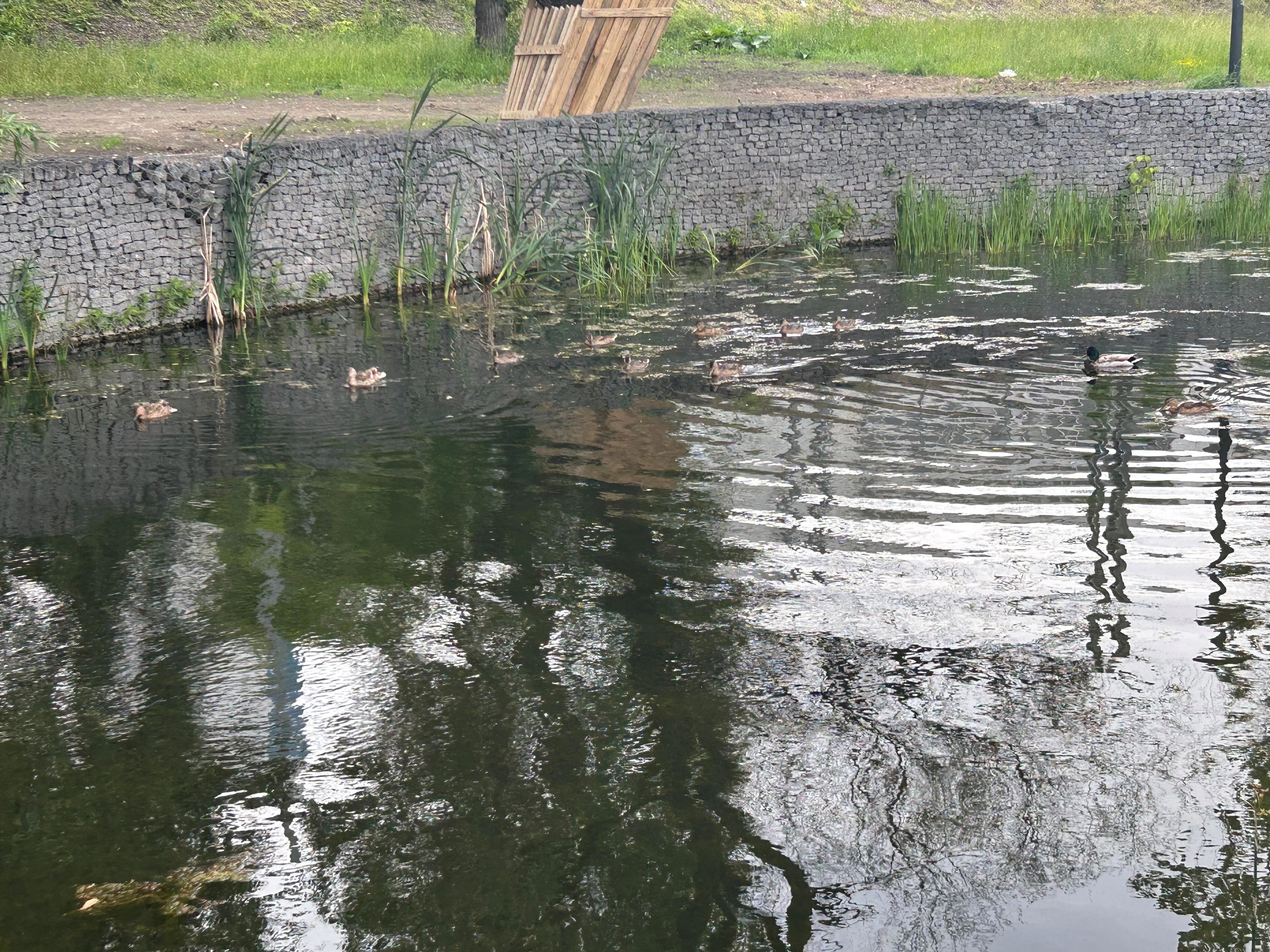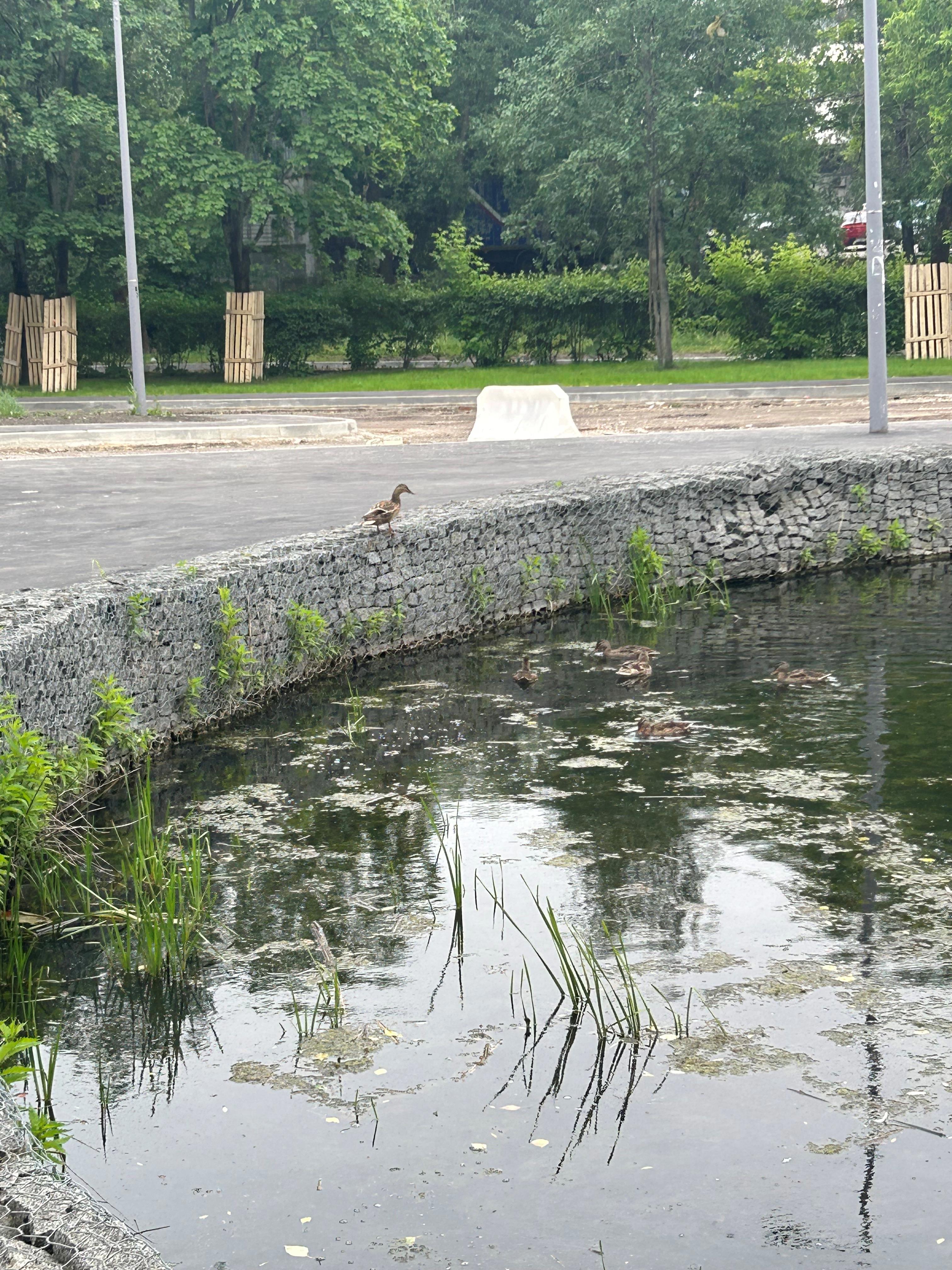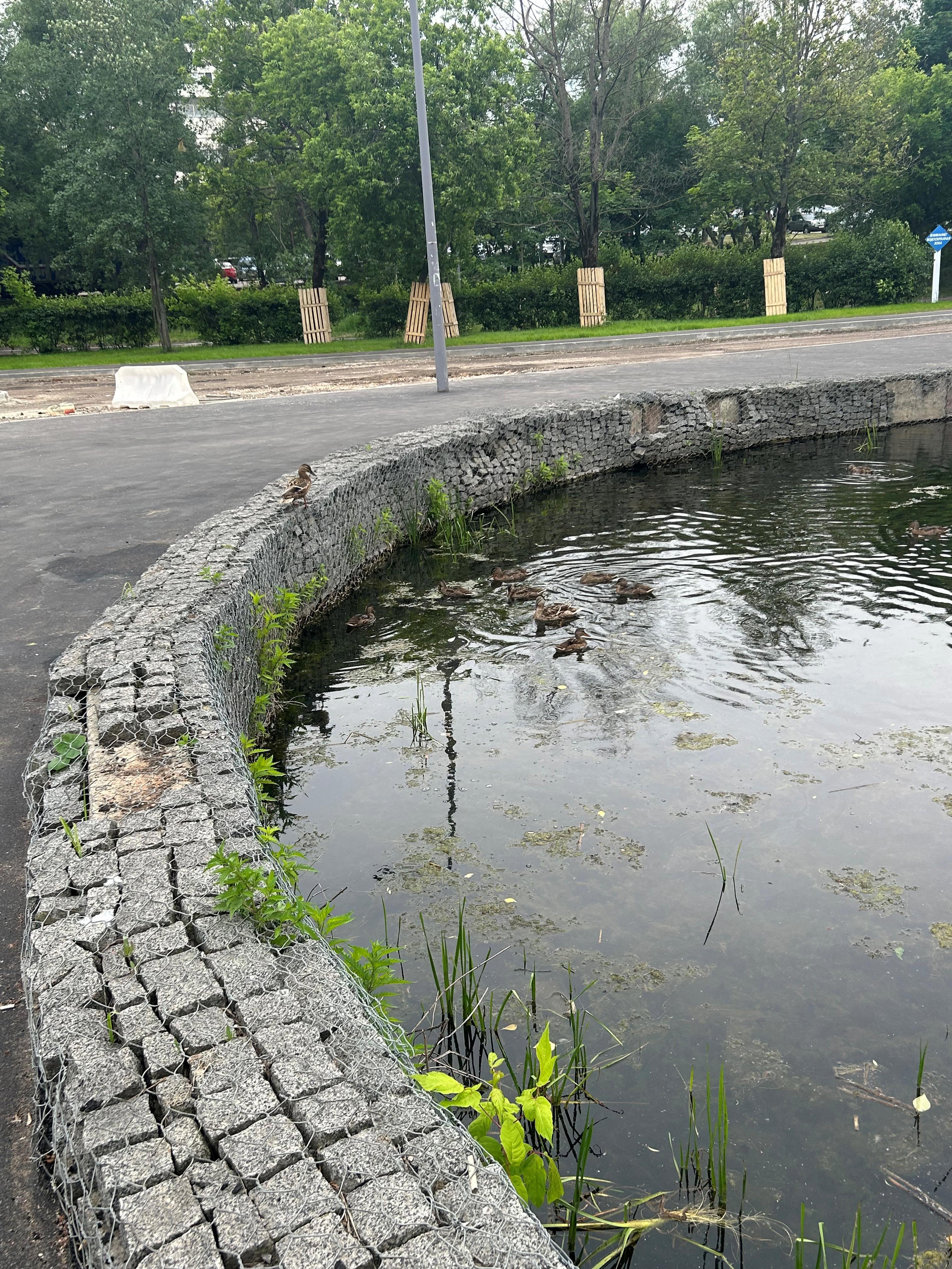 …к слову, работы всё еще не закончены полностью, но уже открыли проход через территорию для пешеходов, и у меня появилась возможность вплотную подобраться к прудику и посмотреть что там да как.