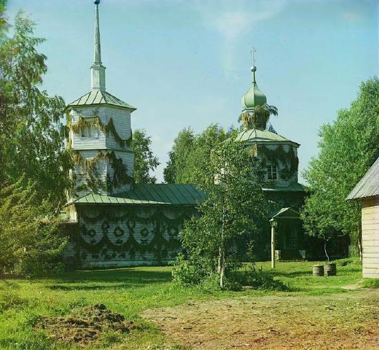 Деревянная Вознесенская кладбищенская церковь на Полустовой горе. Еще в течение 19 века она несколько раз полностью сгорала. Тоже фото Сергея Прокудина-Горского