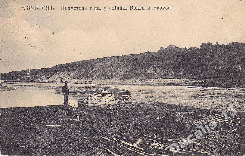 Слева - фото Сергея Прокудина-Горского, г. Зубцов, вид на Полустову гору, около 1910 г. На переднем плане речка Вазуза, на том берегу Печерская церковь, сохранившаяся до сих пор, хоть и сильно разрушенная. Правее церкви сама гора. Деревянная церковь и кладбище на фото Прокудина-Горского не попали: они должны были находиться правее относительно фото, там где более лесистая местность.