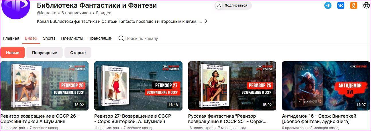 на который я выставляю начала понравившихся мне книг в форме слайдовых фильмов. То есть, я добавляю к аудиоконтенту видеоконтент подходящий к тематике повествования. Вы не только слушаете книгу, но и смотрите слайды подходящие к тематике повествования. К примеру:
