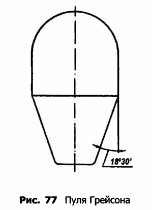 В России начала 19 века дефицит свинца был лютый, поэтому замена свинцовых пуль на чугунные казалась удачной. Круглые чугунные пули ввиду малого веса быстро теряли скорость и эффективная дальность стрельбы была небольшой и было решено испытать продолговатые. Самое интересное, что форма пули Грейсона в этом плане довольно удачна - усеченный конус хвоста пули неплохо ее стабилизирует. Однако ж все равно точность стрельбы оставляла желать лучшего - при стрельбе на 400 шагов в мишень имитирующую строй попадало примерно 1/5 пуль прямым полетом и еще 1/15 рикошетом. Интересно, что к такой же форме пули пришли и австрийцы (Вильд), предполагавший, правда, использование свинцовой пули в нарезном оружии с использованием уплотняющего пластыря из кожи.