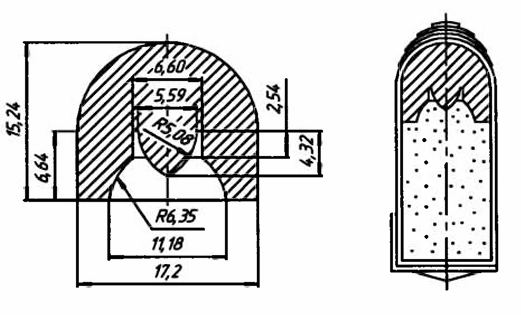 В русском варианте совместили форму короткой французской и вырез из длинной. Этот вариант по результатам испытаний признан наиболее эффективным. Крайне забавно, что в таблице из протокола испытаний пуль Неслера возможно есть ошибка.