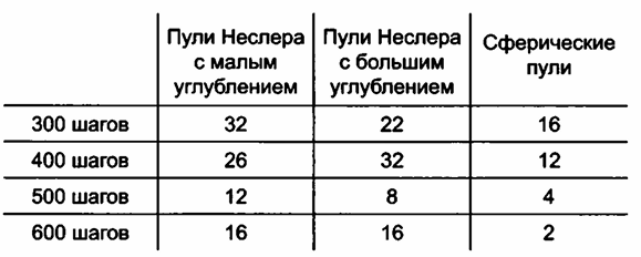 На 500 шагах пули попадают по мишени чаще, чем на 600 для пуль Неслера (для сферических все ок)