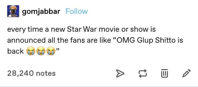 "Каждый раз как выходит новый фильм или сериал по ЗВ, фанаты такие: "ОБОЖЕЧКИ, ГЛОТ ДЕРЬМИТТО ВЕРНУЛСЯ