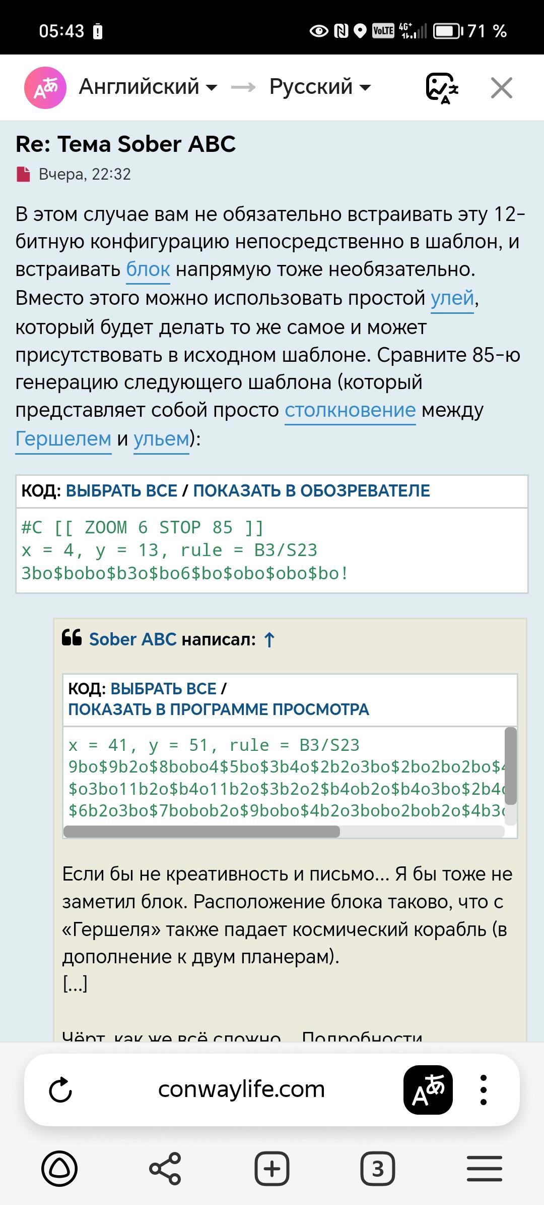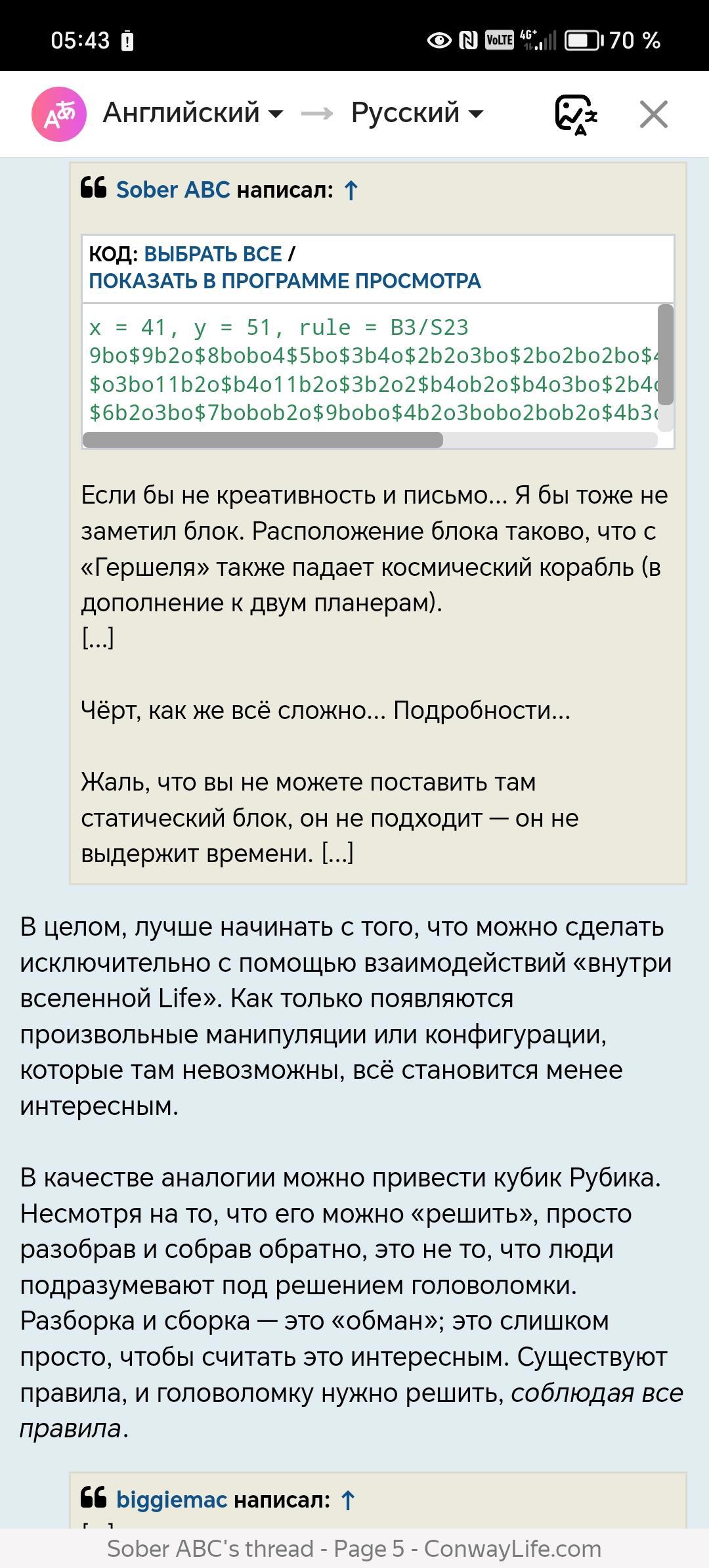 Можно немножко матиматики. Пример живова форума на котором общаются исключительно на английском языке. Про программистов. Клеточный автомат Д.Конвея или как у нас принято называть игра Жизнь. Я бы уточнил вечная теоретическая жизнь - это конвейер! Да, такой сильный вклад внесла в науку эта модель, моюакет, алгоритм самовоспроизведения теоретического движения. Теоремы Лобочевского на практике или даже в среде максимальной цензуры и отказа понимать. Нежелание учится? Это хуже лени!