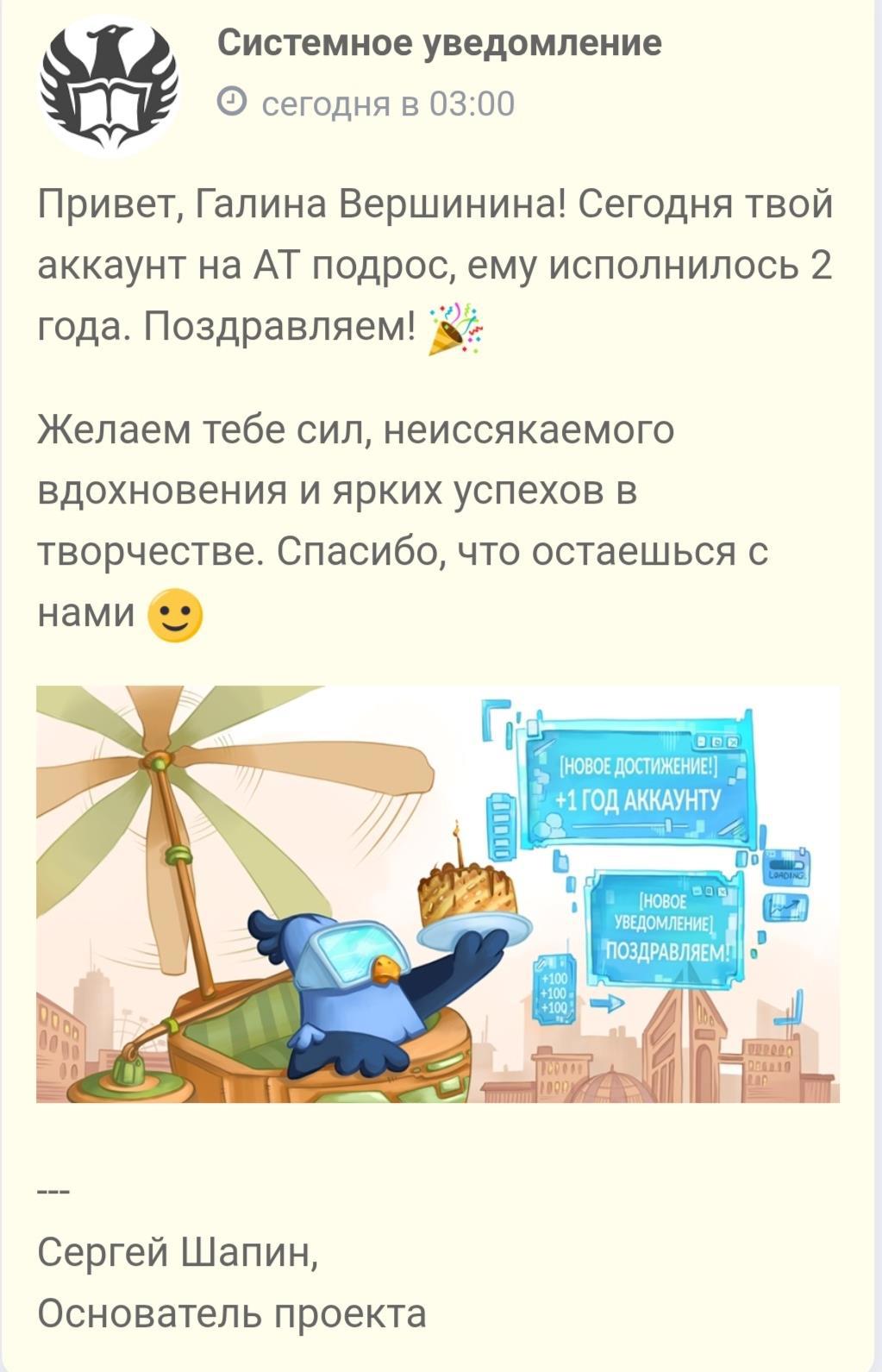 Автоматический Сергей Шапин поздравил меня сегодня с двухлетием на сайте!