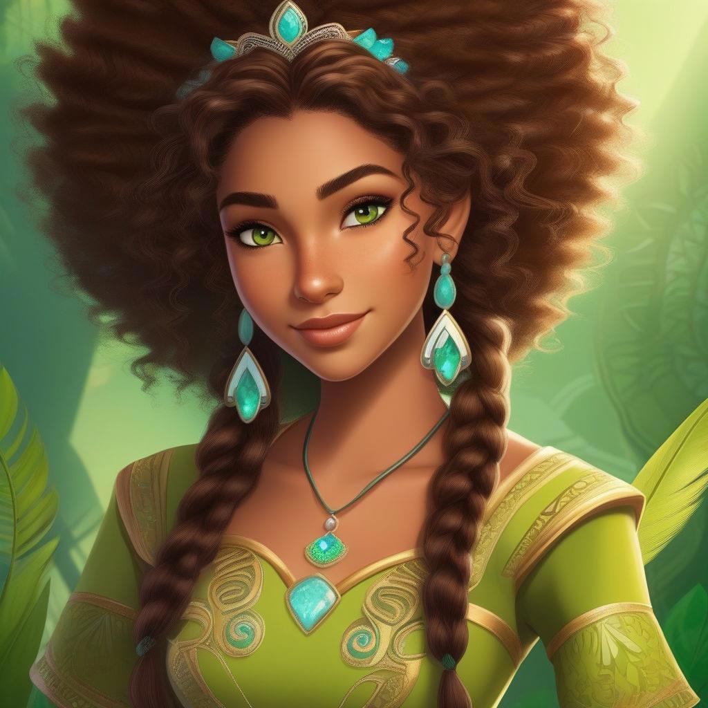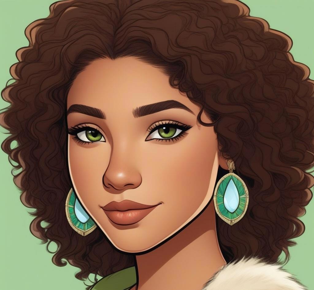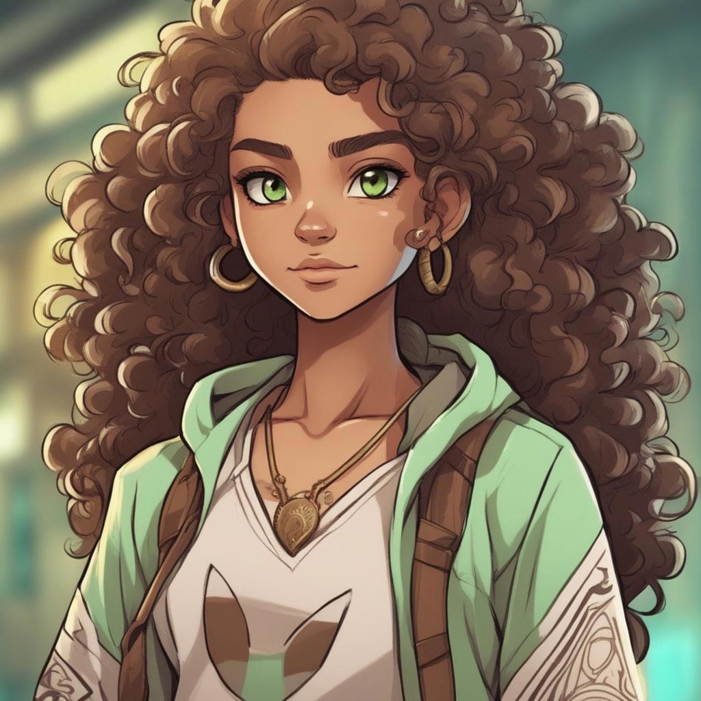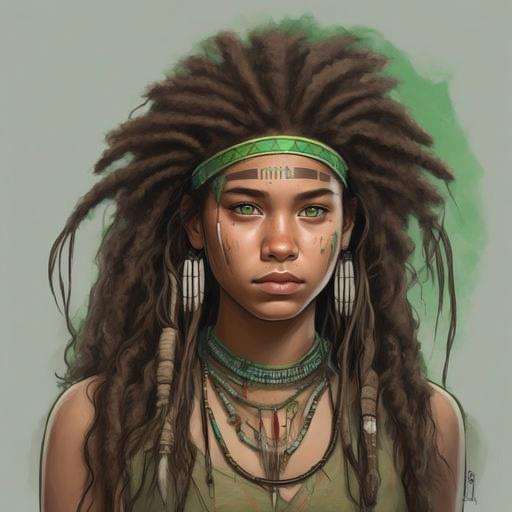 Шестнадцатилетняя девушка-североамериканская индианка из племени Дакота с светло-зелеными глазами и каштановыми волнистыми волосами, собранными в прическе "афро"