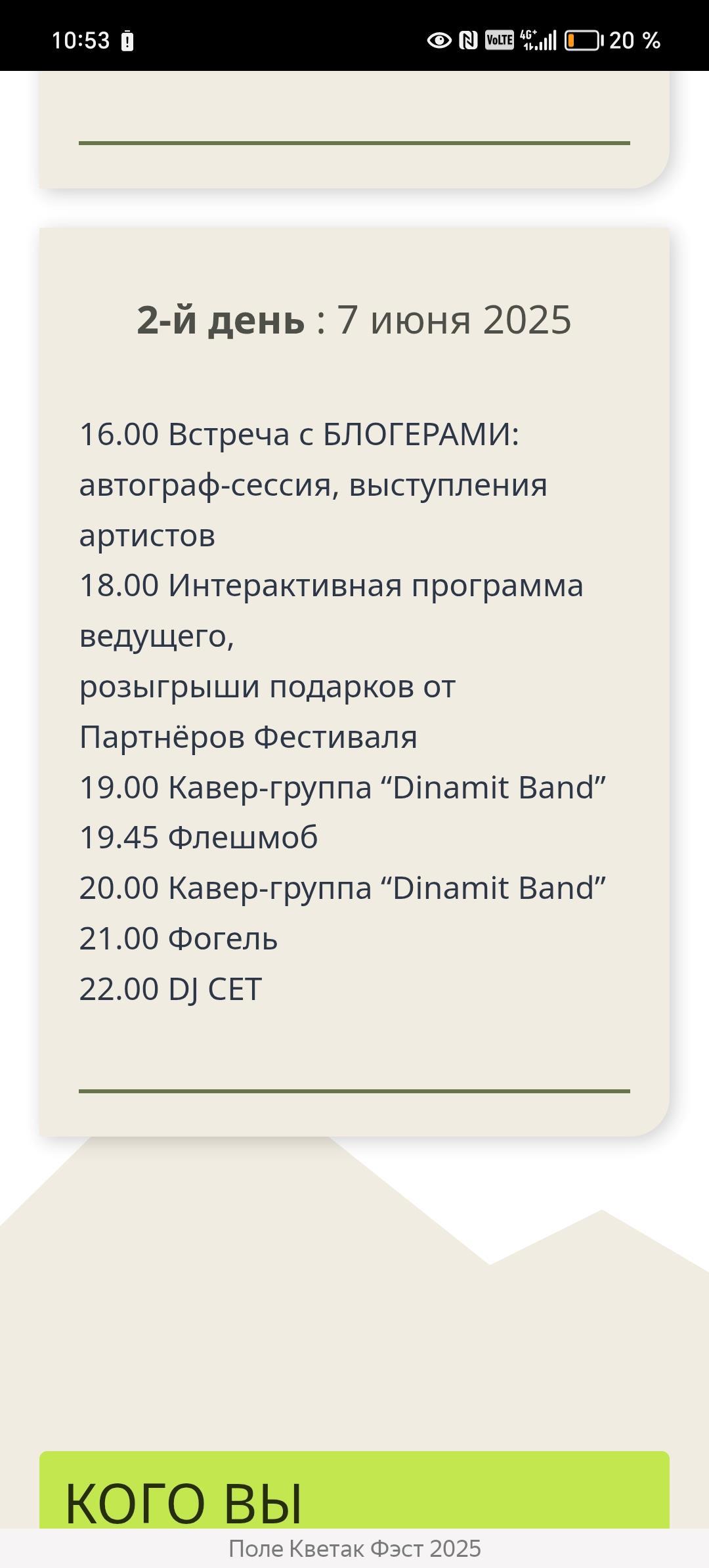А у меня не было плоката, ИПшка закрыта и т.д. Фест, кстати, и сегодня продлится. И там встреча с блогерами. Само определение интересно, но я не блоге... Я общественный деятель и считаю что культура не должна быть шоу бизнесом. Плюс... Формат явно обычный, а не ЗОЖ. Хотя сайт оформлен красиво и приглашают попсовых певцов. По настоящему популярных. И им, вот это поворот, за это приходится плотить деньги? А как же ВРИ и работа за деньги, за идею?