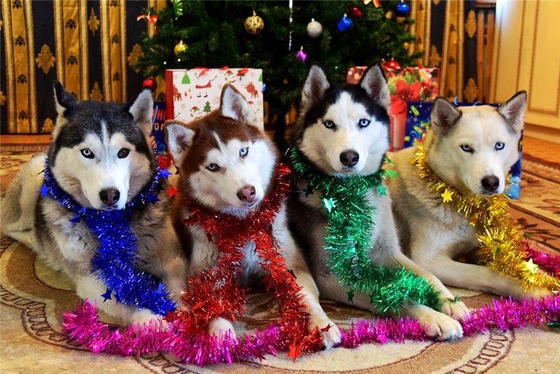 А как вы празднуете Рождество? Расскажите об этом четырём хаскетёрам - и они прокатят вас на санках.
