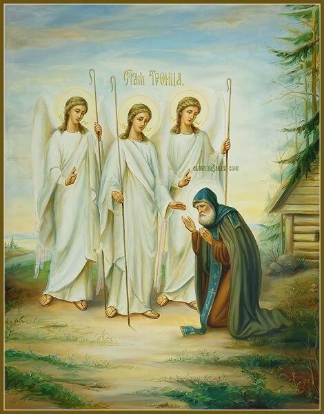 Например, преподобному Александру Свирскому Пресвятая Троица явилась в виде трех мужей, облаченных в светлые одежды.