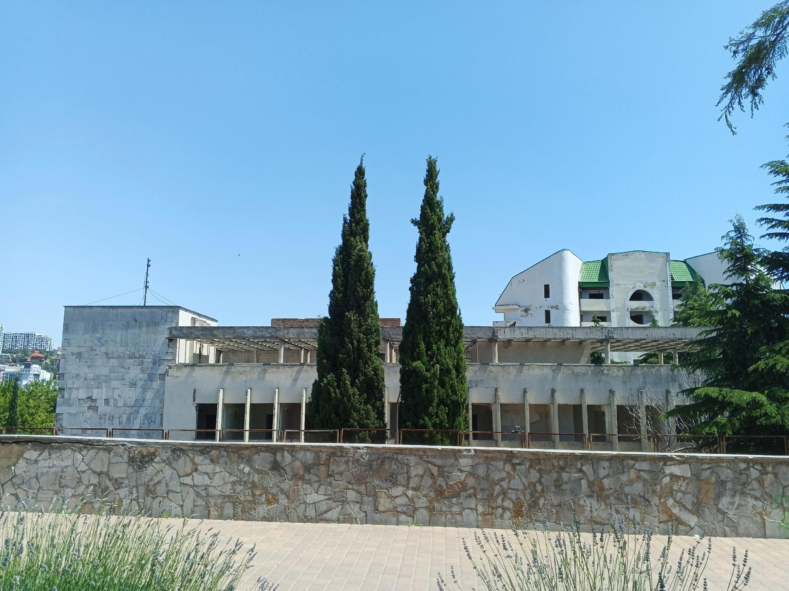 Затем, через дорогу обнаружился старый санаторий. Комплекс был когда-то большим и очень красивым. После развала Союза его забросили и он начал медленно, но верно разрушаться. А вот сейчас мы обнаружили, что в нём начались работы. Похоже что-то снесут и построят заново, но вот столовый комплекс, судя по всему, можно привести в порядок, чем сейчас и занимаются строители.