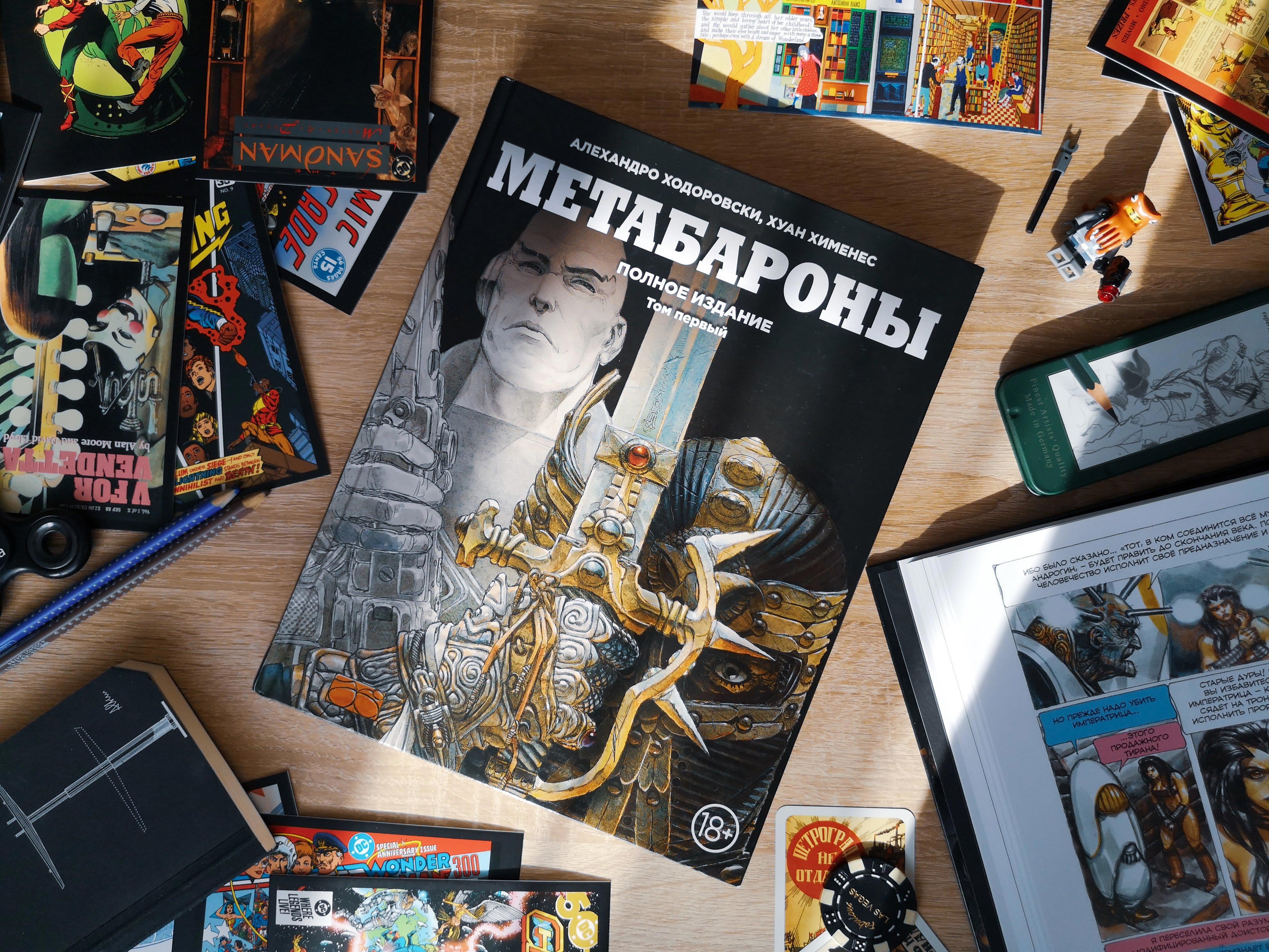 Первое, что впечатляет в этой серии, это грандиозная очень сложная и запутанная Вселенная, созданная Алехандро Ходоровски, и раскрываемая сразу в нескольких циклах графических романов. Тут тебе и Технопантификат, где технокардиналы поклоняются компьютерам и технологиям, и аристократичные Маганаты (по аналогии с “кагантами”); социалистические колонии и императорское семейство все в золоте, космические пираты и всякие сущности из другой Вселенной и т.д.