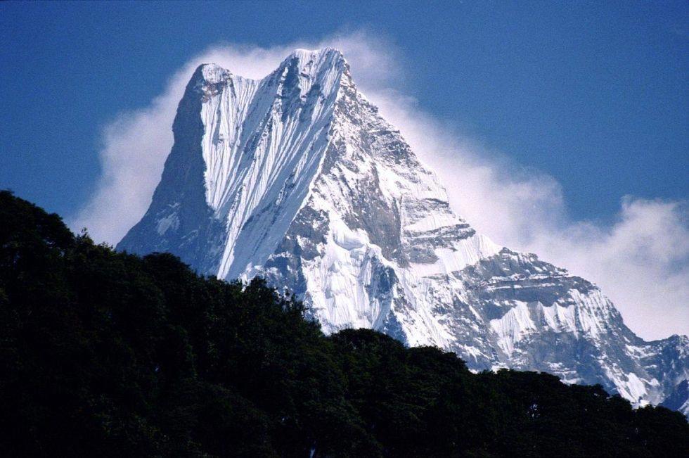 Гора высотой 6998 м, входящая в состав горного массива Аннапурна в Гималаях на севере центрального Непала. Своим названием «Рыбий хвост» гора обязана форме двух её вершин, которые при взгляде с запада образуют фигуру, напоминающую хвост гигантской рыбы. Местным населением гора почитается как дом бога Шивы, а перья снега считаются дымом его божественной сущности.