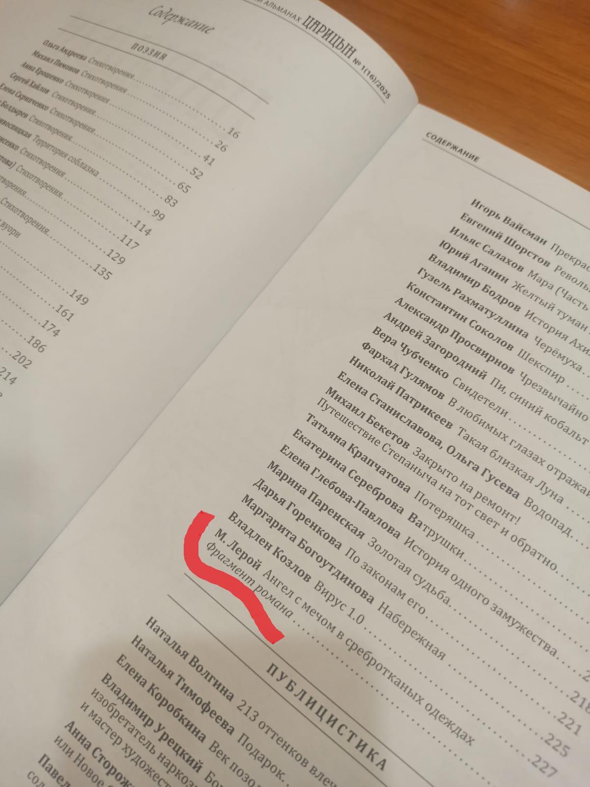 Литературный альманах "Царицын", официальное издание Волгоградской региональной организации Российского союза профессиональных литераторов, опубликовал фрагмент романа "Ангел с мечом в сребротканых одеждах"