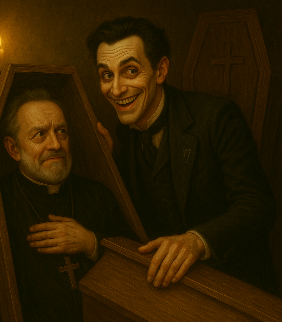 Священник в гробу. И никакого оскорбления чувств верующих.