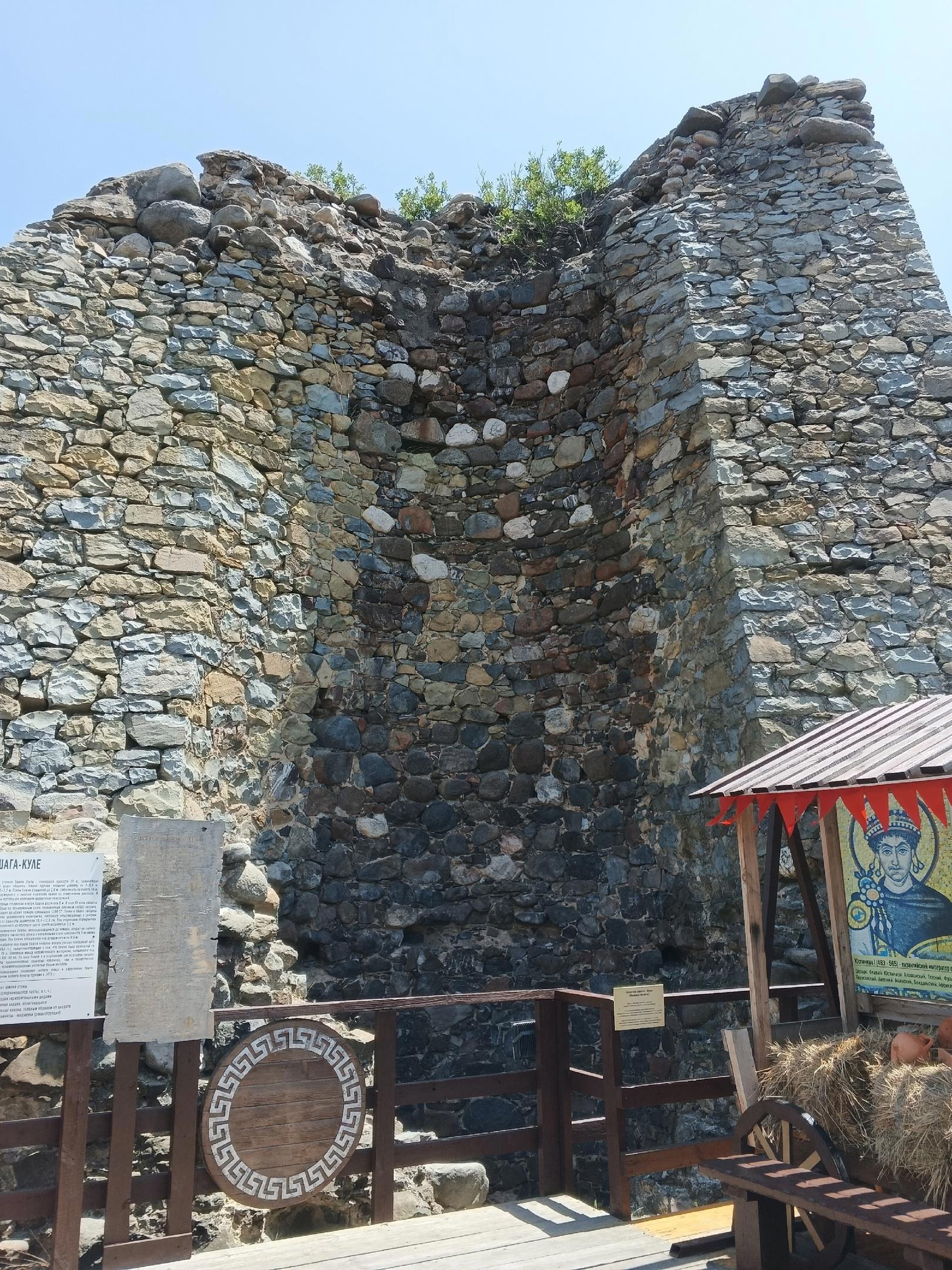 Судя по всему, за снос сараев сейчас ломаются копья в судах. Ну а жителям, которые живут здесь не один десяток лет, а некоторые семьи и не одну сотню лет, совершенно не важно, что они способствуют разрушению памятника. Это их сарай и стоять он должен здесь. Всегда так было... А сколько вокруг домишек и подпорных стеночек построенных явно из камней взятых со стен древнего Алустона... Это просто не поддаётся подсчёту. Но историки, да и мы тоже, надеемся, что всё-таки памятник смогут защитить от разрушения.