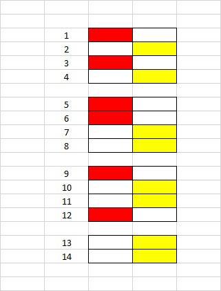 Графически это выглядит так, где разноцветными квадратиками обозначена рифма и ударение в слове — последний или предпоследний слог