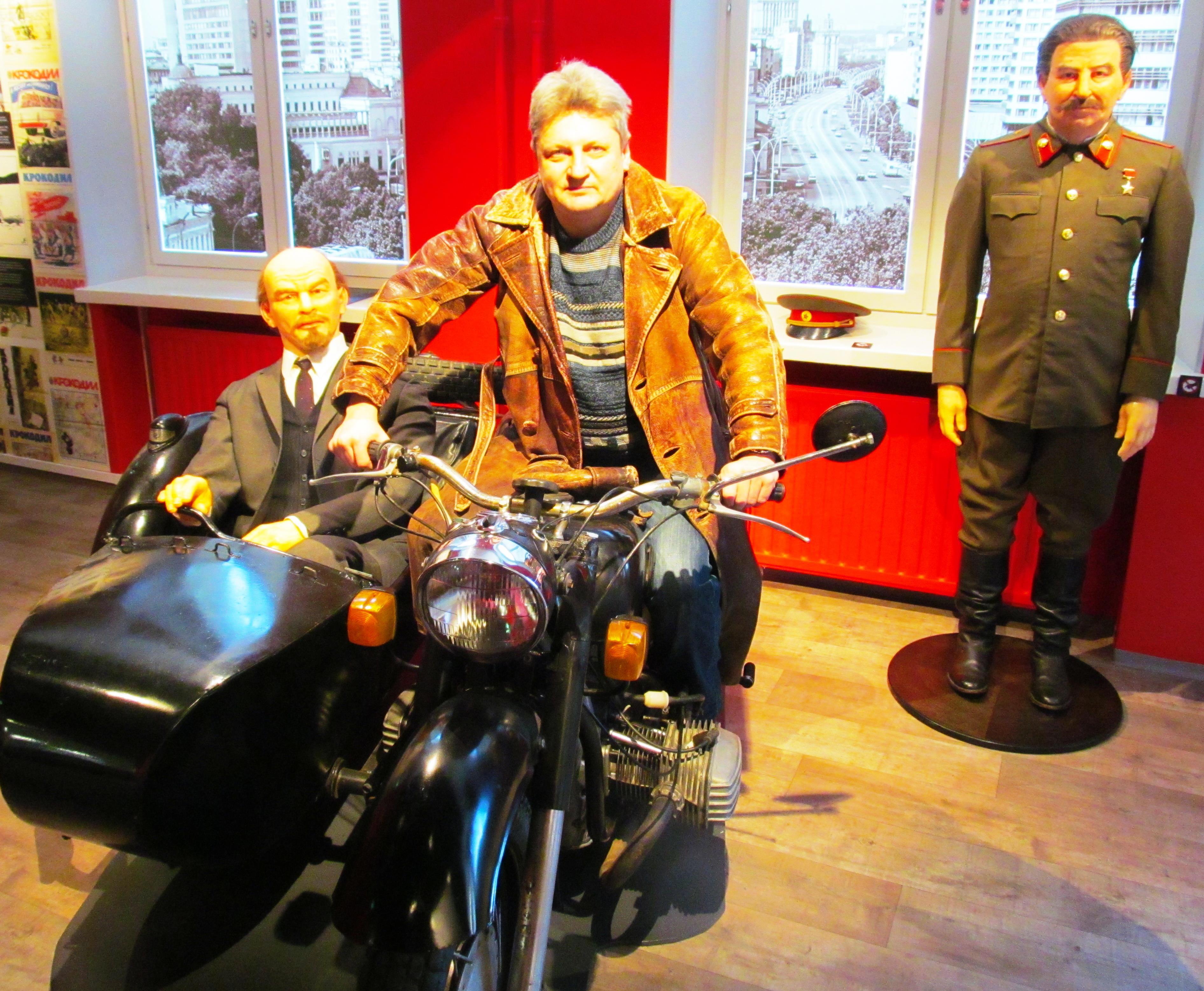 И даже можно сфотографироваться с Ильичем прямо на мотоцикле! Верно, он на нем на конференцию и прикатил, мимо царских сатрапов!