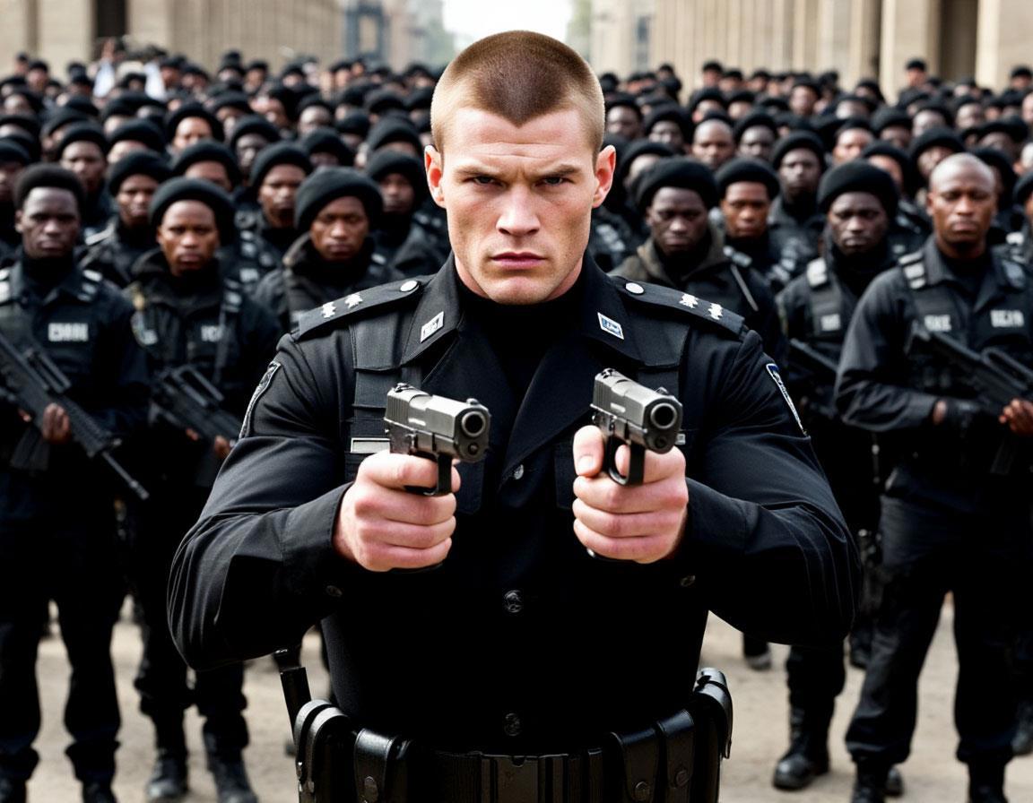 но клята нейронка подсовывала все не то, то на переднем плане не понять кто, то на заднем плане вместо чернокожих негров бледнолицые в балаклавах, опять же АК нейросеть принципиально не хочет изображать: