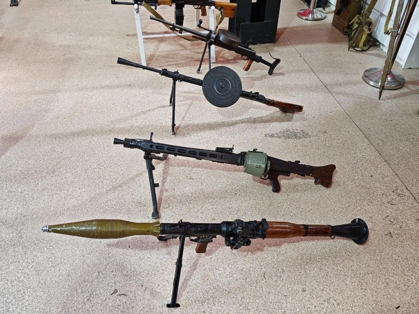 Пистолеты - пулеметы. И партизанский миномет ручной. Правнук петровской ручницы. Когда берешь в руки - тут же чуешь, насколько тот же ППС удобнее чем Томпсон... И легче.
