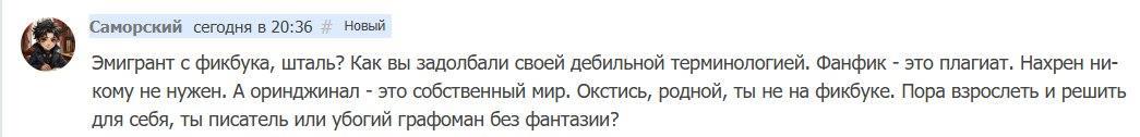В ответ я получил весьма нелестный, неприязненный, даже агрессивный комментарий (он будет позже), на который я ответил... мне кажется, соразмерно. Очень скоро я был назван неадекватом и отправлен в игнор-лист, а комментарии товарищ удалил. Но злопамятный Юрка Дыких все помнит, а интернет ему в этом содействует)) Комментарий:
