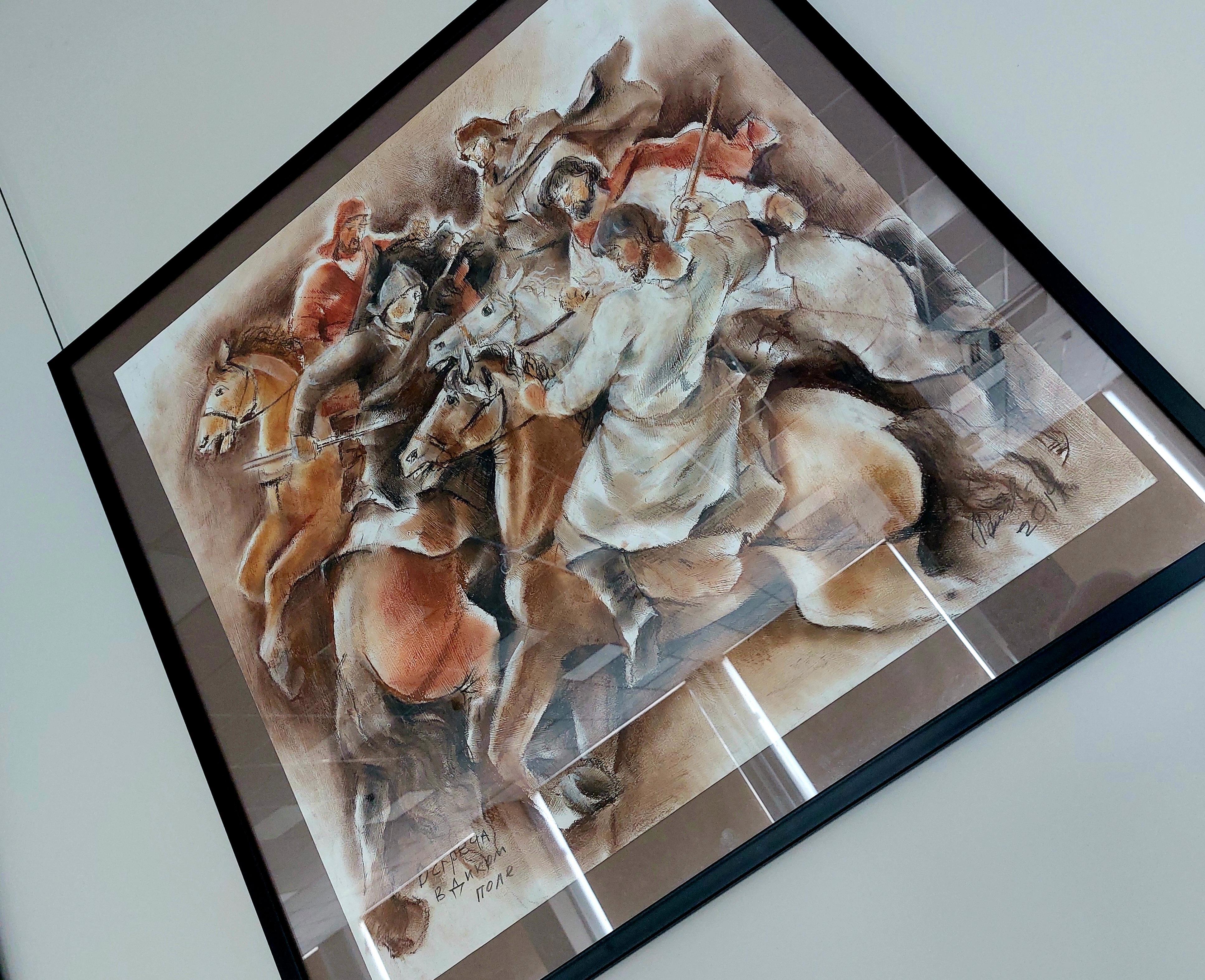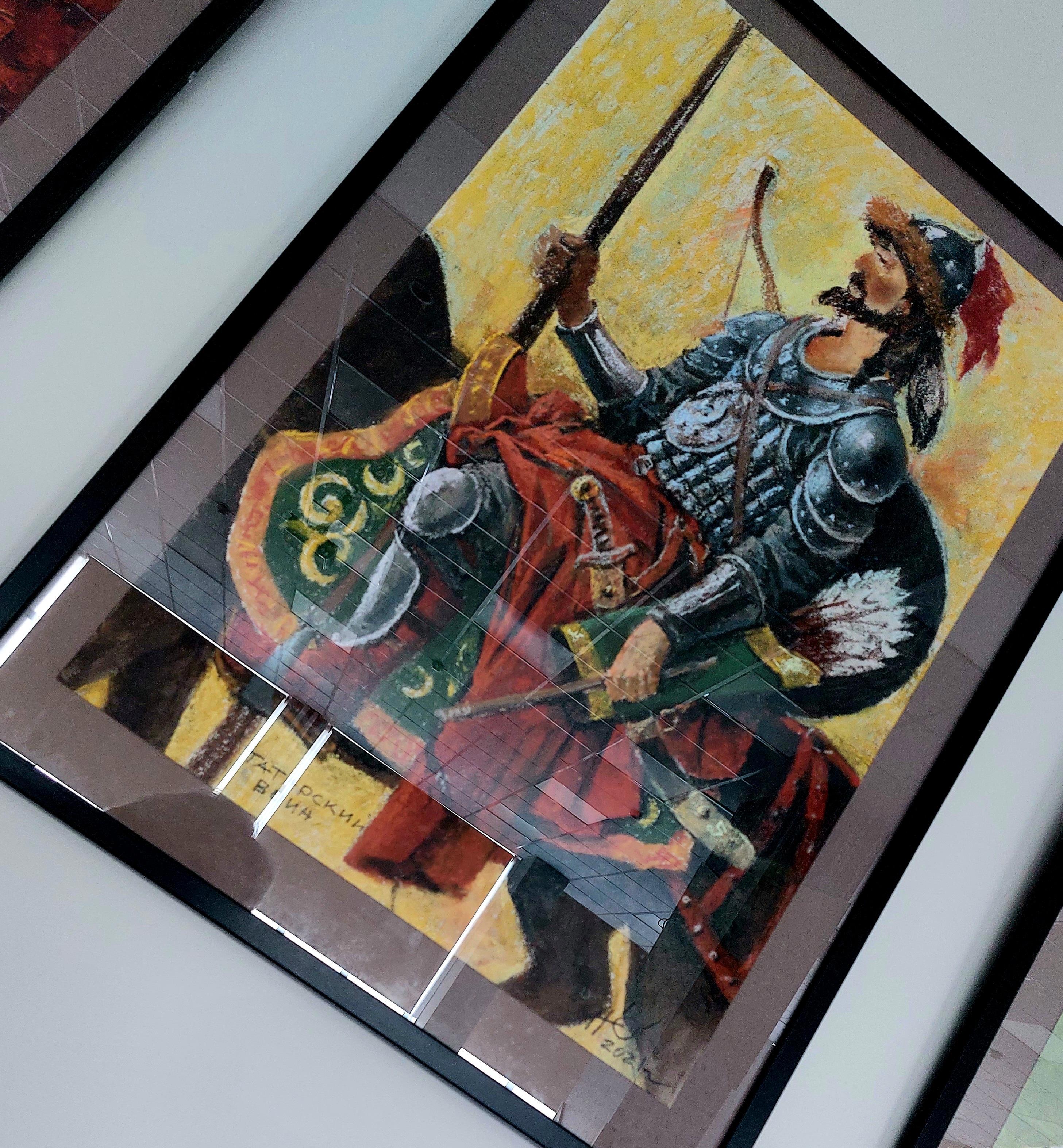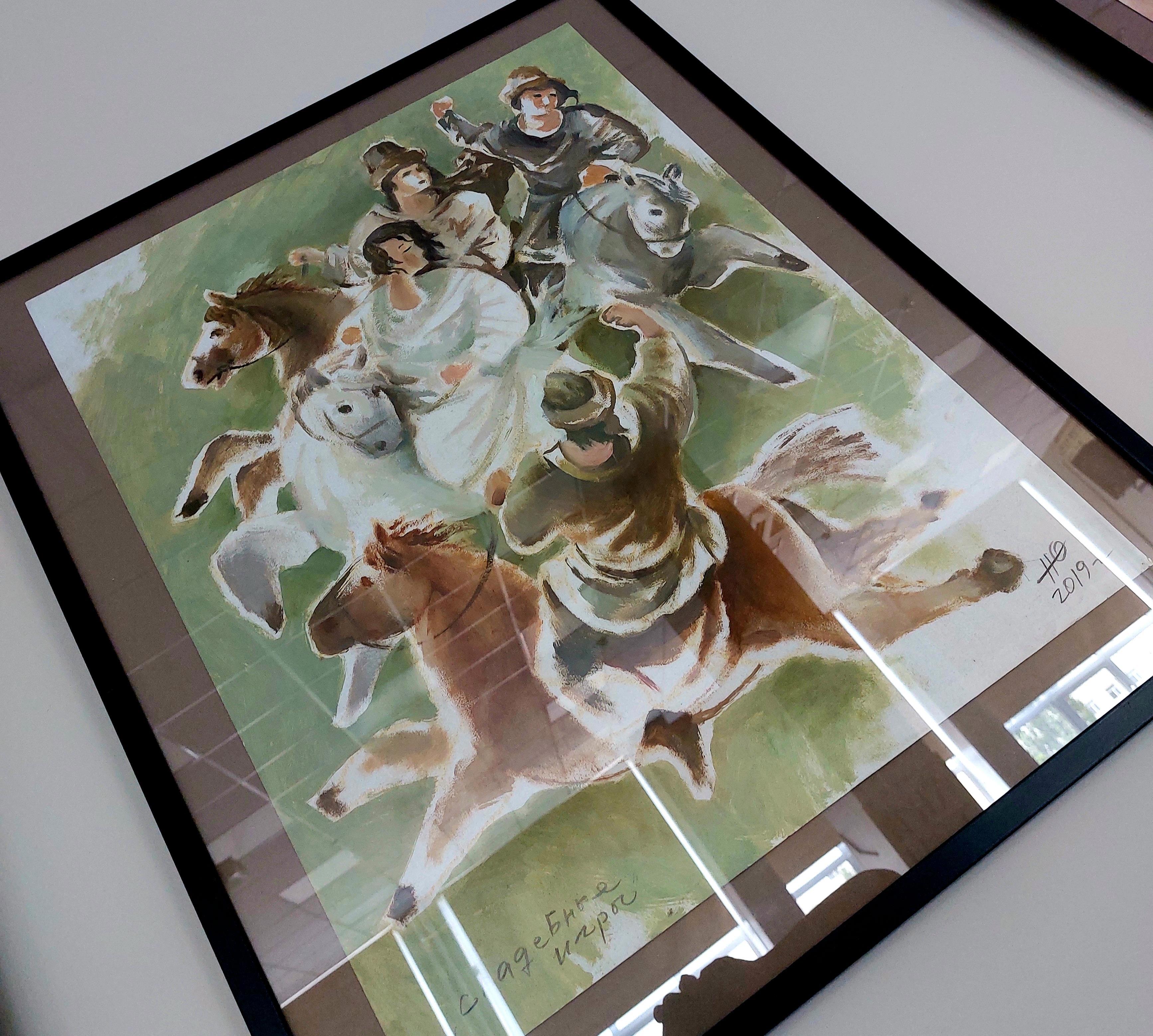 На столь скромном выставочном пространстве художник смог вовлечь зрителя в свой авторский мир, в котором скачут на быстроногих конях татарские воины, встречаются в диком поле, затевают странные тюркские игры верхом на своих скакунах. Имя мастера - Николай Острицов.